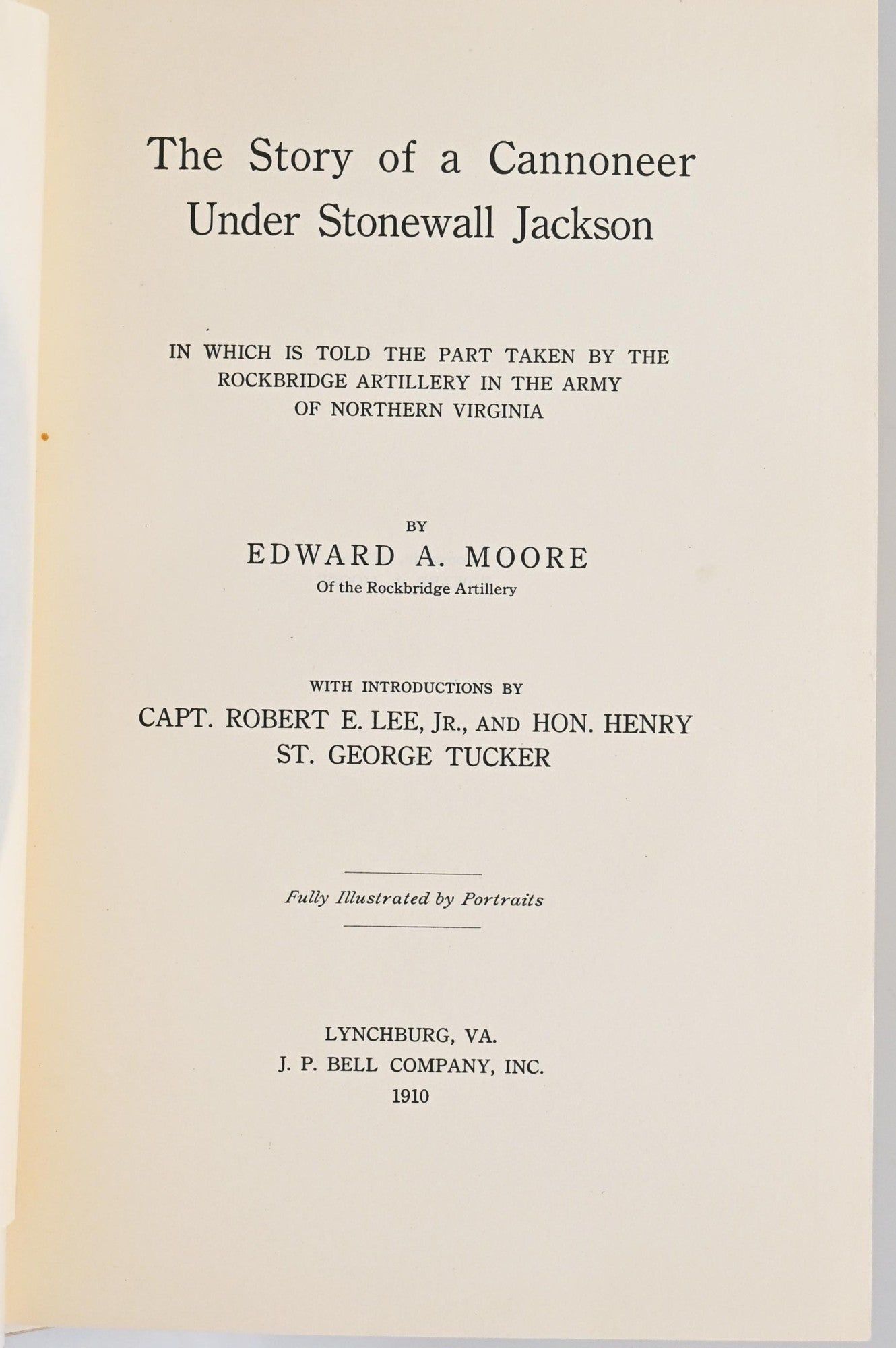 [CIVIL WAR] THE STORY OF A CANNONEER UNDER STONEWALL JACKSON. IN WHICH IS TOLD THE PART TAKEN BY THE ROCKBRIDGE ARTILLERY IN THE ARMY OF NORTHERN VIRGINIA