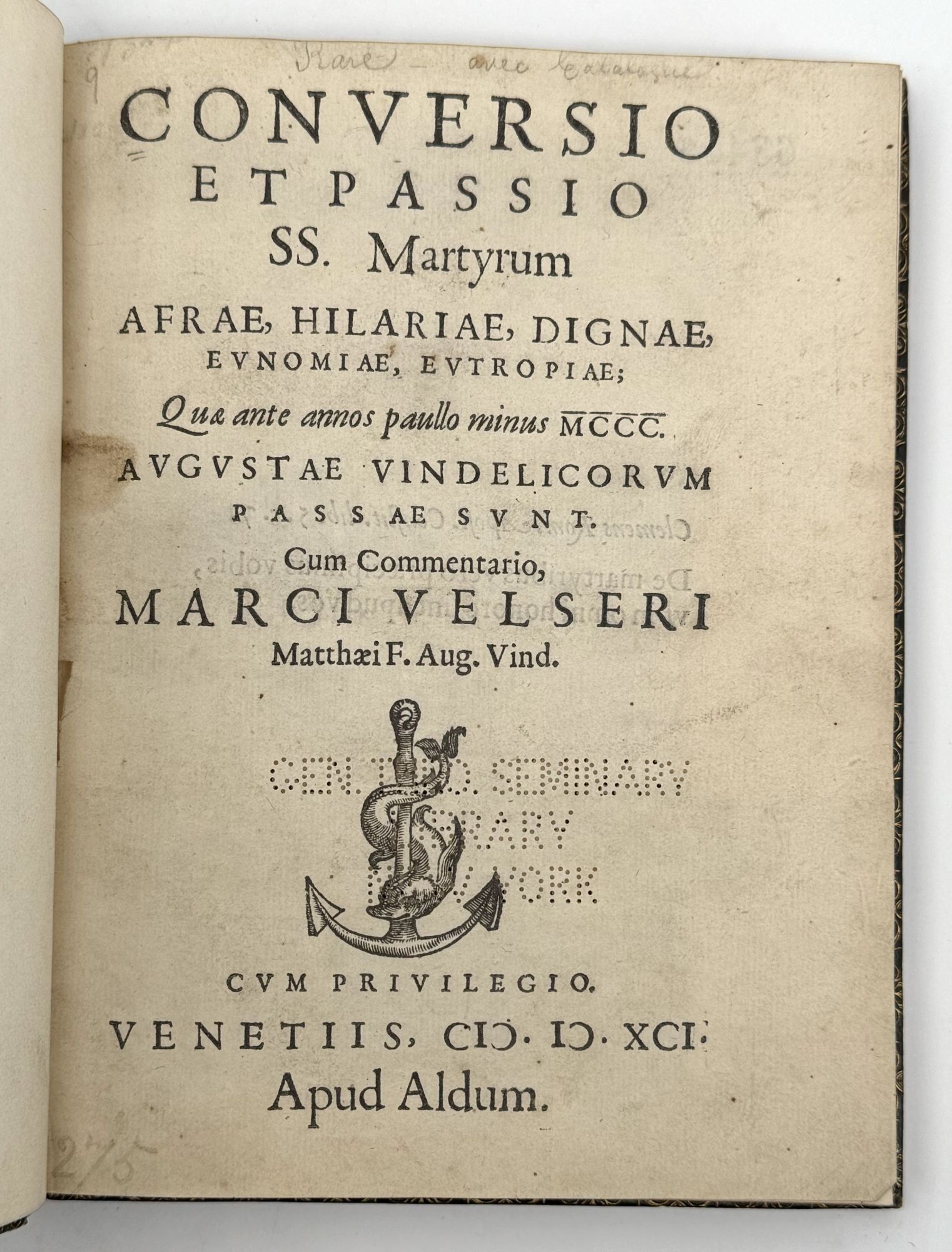 Conversio et passio SS. Martyrum Afrae, Hilariae, Dignae, Eunomiae, Eutropiae .… cum commentario M. Velseri