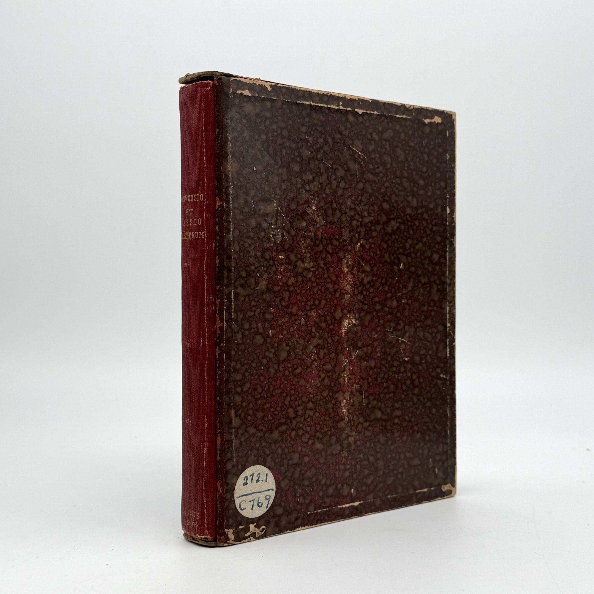 Venice: Aldus [Manutius II], 1591. Woodcut printer’s device on title, decorative headpieces and initials in text. 67, [1] ff. 1 vols. Small 4to. Early nineteenth century blue morocco gilt, spine with gilt roses, boards with elaborate roll borders and large gilt Aldine device, a.e.g. Bookplate of Syston Park and another; GTS bookplate, perforated stamps on title (touching Aldine printer’s device) and last leaf. Foot of spine rubbed. Cloth wrapper and marbled slipcase. Woodcut printer’s device on title, decorative headpieces and initials in text. 67, [1] ff. 1 vols. Small 4to. Nice binding on the martyrological work, which includes a three-page catalogue of works available from Aldus Manutius II.