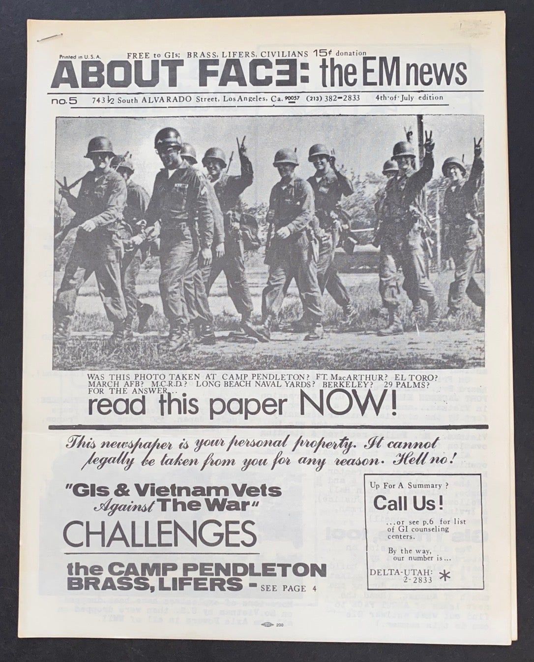 Los Angeles, 1969. [6p.], 8.5x11 inch mimeographed sheets stapled at corner, very good. GI Movement newsletter for Enlisted Men opposed to the Vietnam War. Includes correspondence from readers and resources for those facing legal trouble. Not to be confused with other newsletters by this name.