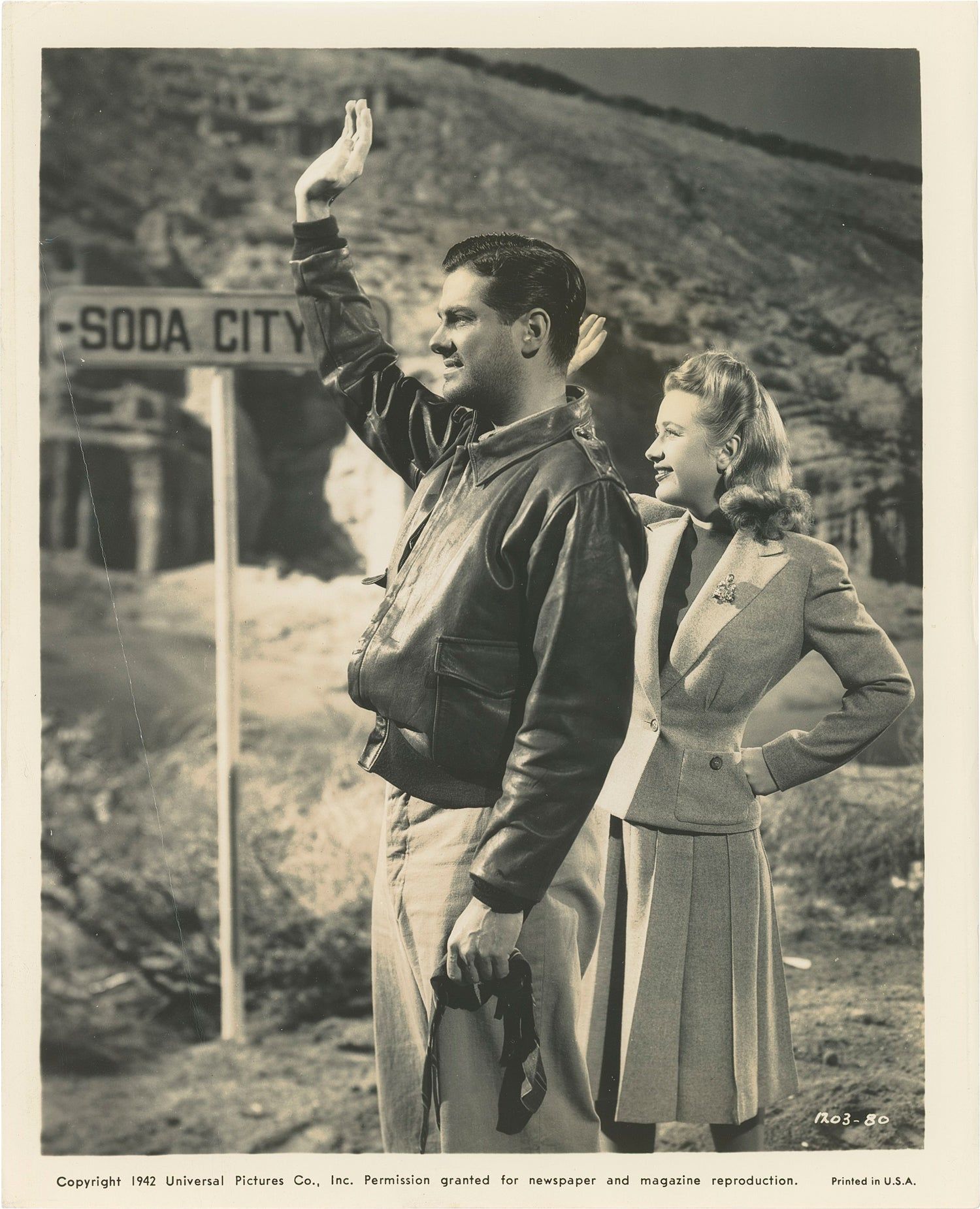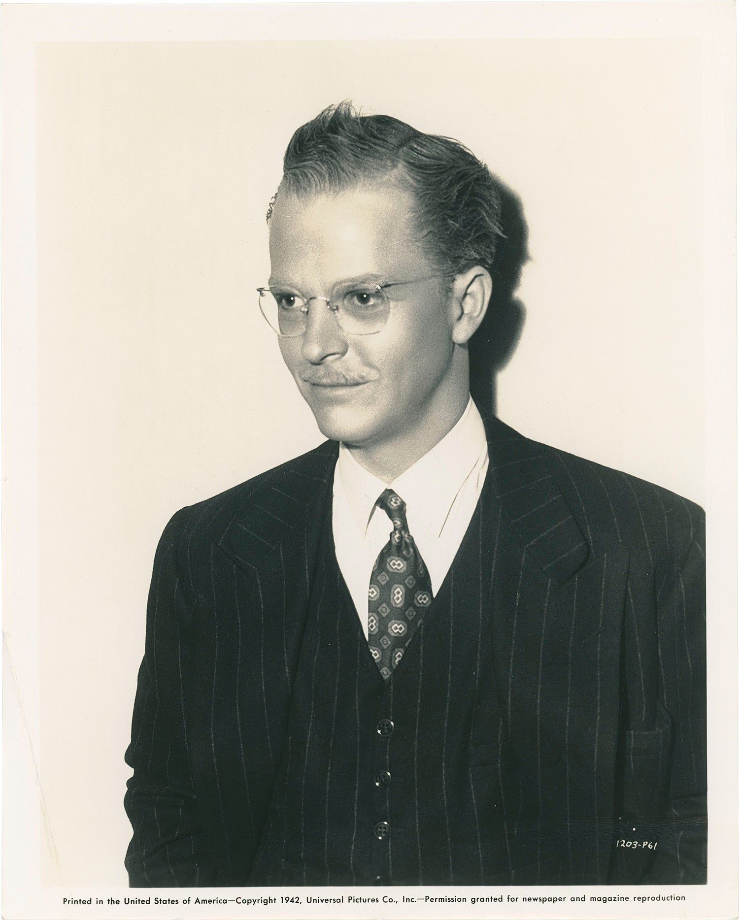 Universal City: Universal Pictures, 1942. Three vintage publicity photographs from the 1942 film, one showing actor Alan Baxter in heavy makeup and costume as Freeman, the other two showing actors Robert Cummings and Priscilla Lane. One with a printed mimeo snipe affixed to the verso, and one with a provenance stamp on the same.