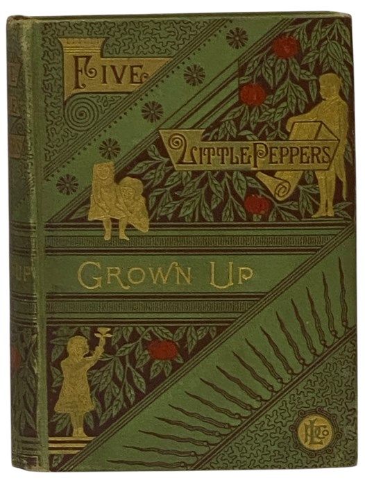 Boston: D. Lothrop Company, 1893. Hard Cover. Good/No Jacket. 0x0x0. Mente, [Chas.]. Binding a bit shaken, 1 inch spot on rear board edge, pages lightly toned (endpapers more so). 1893 Hard Cover. 527 pp. Five pages of publisher ads follow text. Green cloth, gilt titles, brown and red and gold decorations. Black-and-white plates by Mente. The Five Little Peppers is a book series created by American author Margaret Sidney which was published 1881 to 1916. It covers the lives of the five children in their native state and develops with their rescue by a wealthy gentleman who takes an interest in the family. The Five Little Peppers and How They Grew tells how the Peppers live, learn, and play in their little brown house. They are poor, and Mamsie must work constantly to keep the wolf from the door, but their lives are unexpectedly happy.