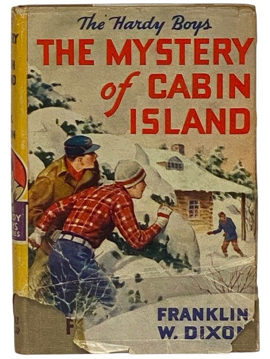 New York: Grosset & Dunlap, 1929. Reprint. Hard Cover. Good/Fair. 0x0x0. Rogers, Walter S. Carpentier 1955B-44. Very good in fair jacket. Chips from jacket corners with split along front jacket flap, ink owner stamp on front flyleaf. 1929 Hard Cover. iv, 214 pp. #8 in the Hardy Boys series. Glossy frontispiece by Walter S. Rogers. With two mysteries to solve, Frank and Joe must climb aboard their iceboat the Sea Gull to reach Cabin Island, where a belligerent stranger orders them off. Sabotage to the boat, danger to themselves, and a ghostly prowler do not daunt the Hardy boys in their search for Johnny Jefferson and for clues to stolen antique medals. How the teenage investigators outwit a ruthless foe and succeed in solving both mysteries makes for mounting suspense in this brisk-paced adventure.