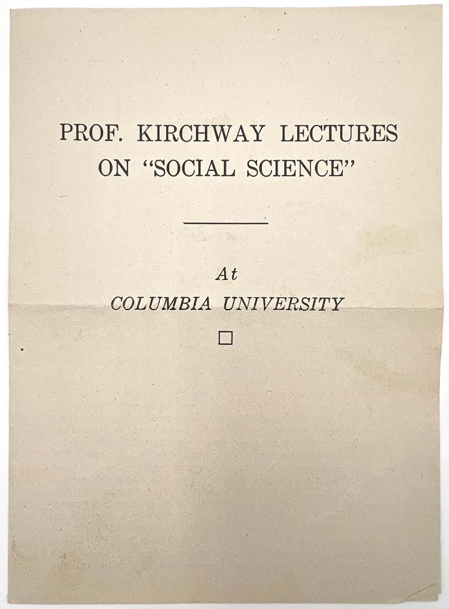 Prof. Kirchway Lectures on Social Science at Columbia University