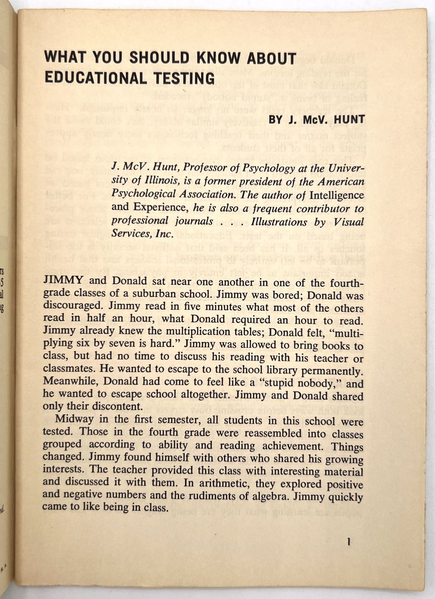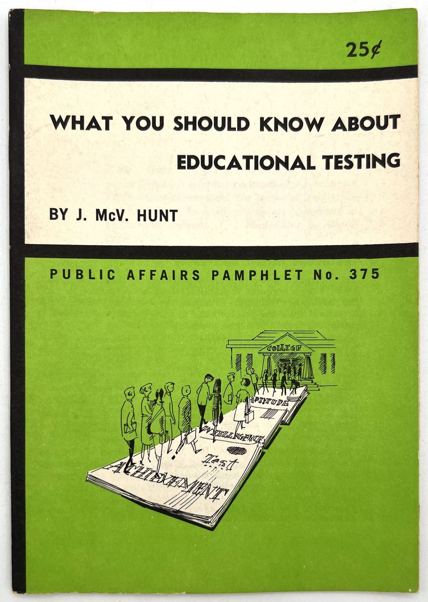 New York, New York: Public Affairs Committee, 1965. Very good. Light toning.. First edition, presumed first printing of a booklet for parents on standardized testing in schools, published as a part of a series of public health booklets by the Public Affairs Committee, a nonprofit organization dedicated to families and public welfare issues in the United States. Each of the booklet covered social and health issues ranging from sex education to mental health, race in America, and finding employment. This booklet explains why testing is needed, what it measures, and possible flaws and pitfalls of this kind of assessment. Provides a very interesting look into how psychologists and educators worked together to assess children's intelligence and abilities in America at this time. Single vol. (7" by 5"), pp. 28, illus. in original illus. bright green wrps.