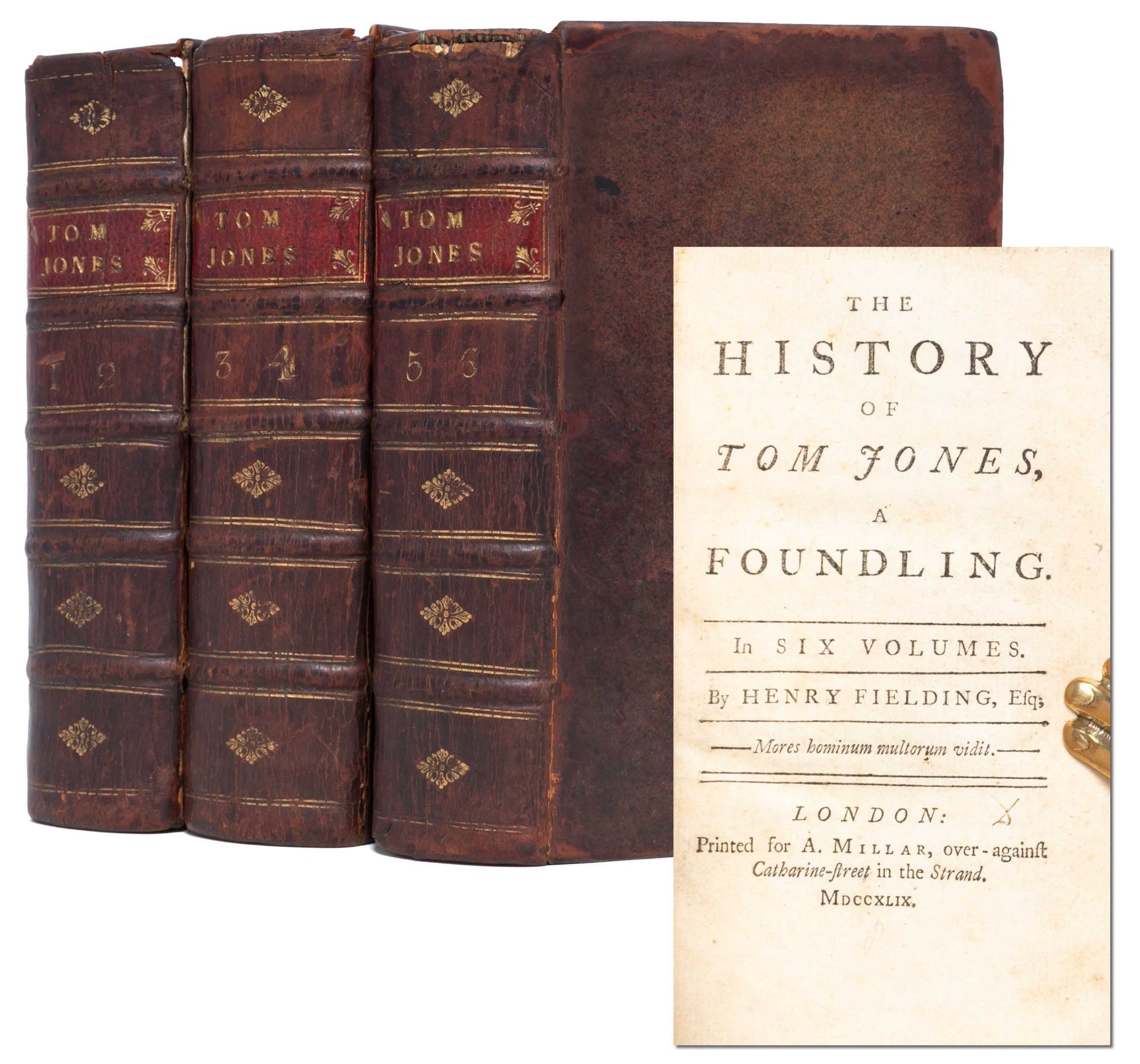One of the earliest and most successful examples of the British novel, particularly the comedic genre. All 2,000 copies of the first printing were subscribed prior to the official release, prompting two more printings in 1749. Tom Jones was a bestseller in its day and has never gone out of print; it continues to inspire and amuse new generations of readers. Very Good +.