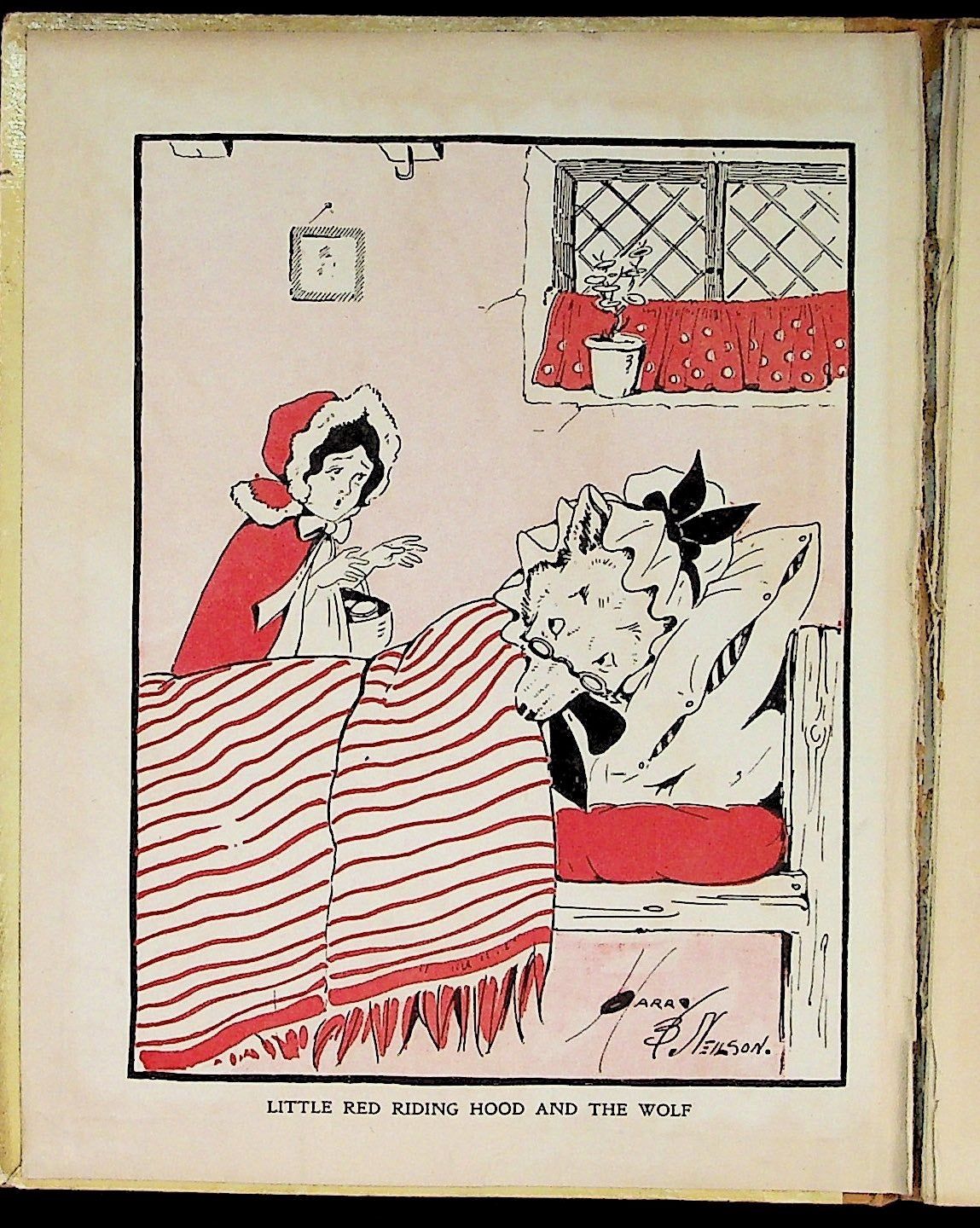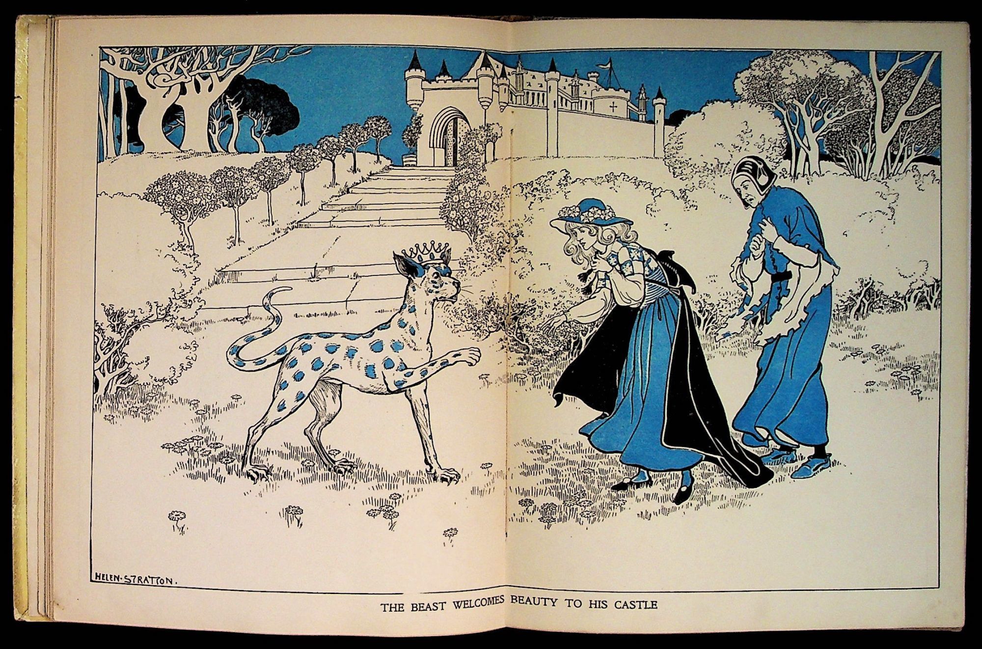 London: Blackie & Son Limited, n.d.. Hardcover. Very Good -. Hardcover. Undated but from the early 20th century. Somewhat uncommon, with one listing on Via Libri of a poor copy, and copies in just two libraries on WorldCat. With several classic stories, including Beauty and the Beast, Jack and the Bean-Stalk, and Little Red Riding Hood. Some of the illustrations are signed by the well-known English illustrator Helen Stratton (1867-1961). By 1891 Helen was in Kensington, London to attend art school, where she became a follower of Art Nouveau in the style of the Glasgow School of Art. For many years she lived and worked as a book illustrator and painter in Kensington with her widowed mother and siblings. From 1896 Stratton became well known for bold and imaginative pen and ink illustrations to classic tales, her first success being Norman Gale's Songs for Little People, of which The Bookseller wrote in 1896 "Miss Stratton has headed, tailed and bordered the verses with a series of exquisitely pictured fancies" In 1898 she drew 167 illustrations for Walter Douglas Campbell's Beyond the Border, then a year later reached the peak of her illustration career with upwards of four hundred drawings for a finely crafted art nouveau quarto edition of The Fairy Tales of Hans Christian Andersen, published by George Newnes. In the same year she collaborated with William Heath Robinson and three other illustrators. [Wikipedia] Bound in glossy illustrated covers, with an old lady (witch?) on the front cover and advertisements for Blackie and Son's illustrated storybooks. With a tan cloth spine. Covers are soiled and lightly bumped. Hinges are cracked but text block is holding. Text pages are generally clean, with occasional spots and slight browning to margins. About very good minus. Measures 8 x 10.25 inches. Unpaginated [28 unnumbered pages] CHILD/012925.