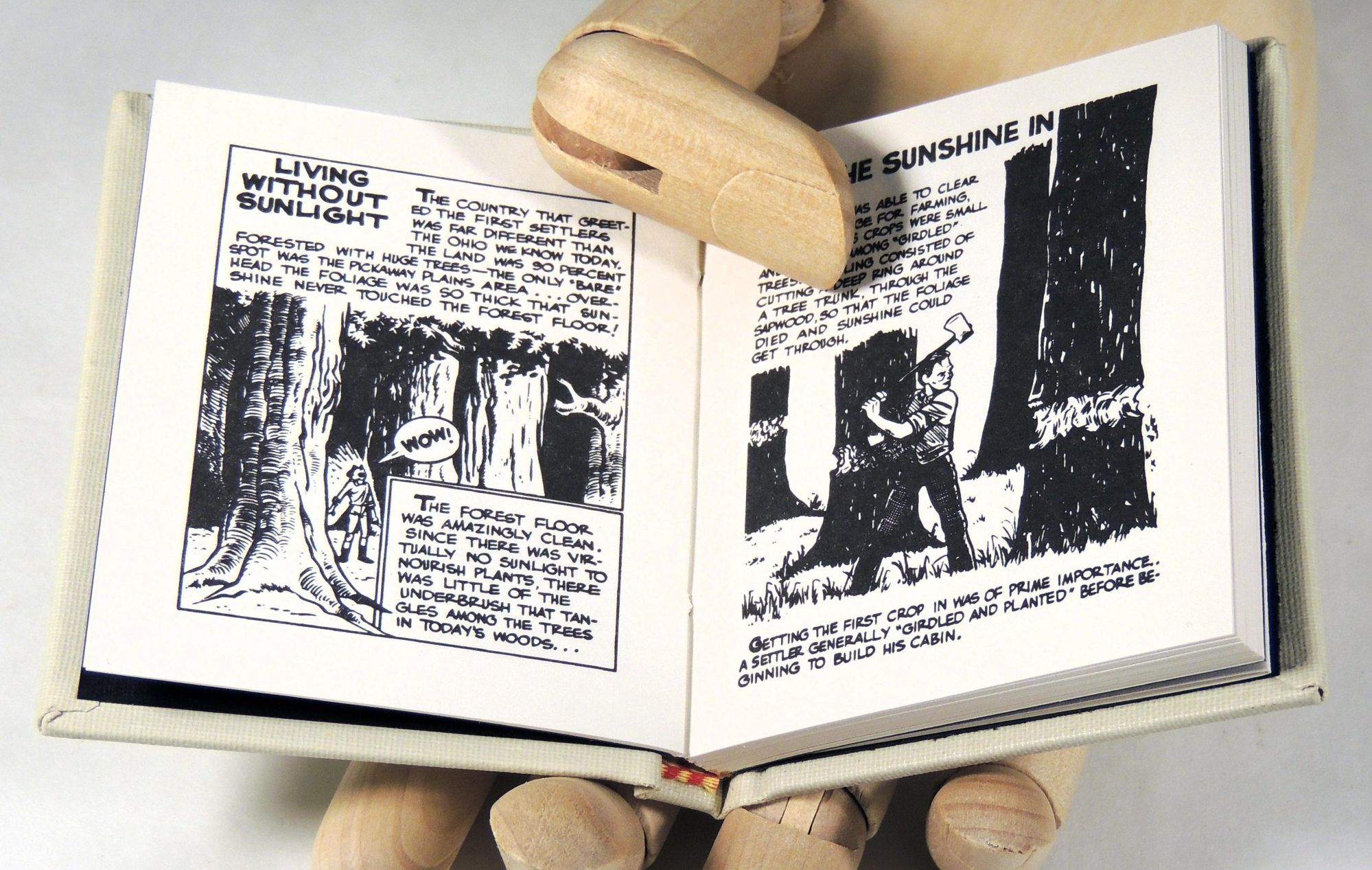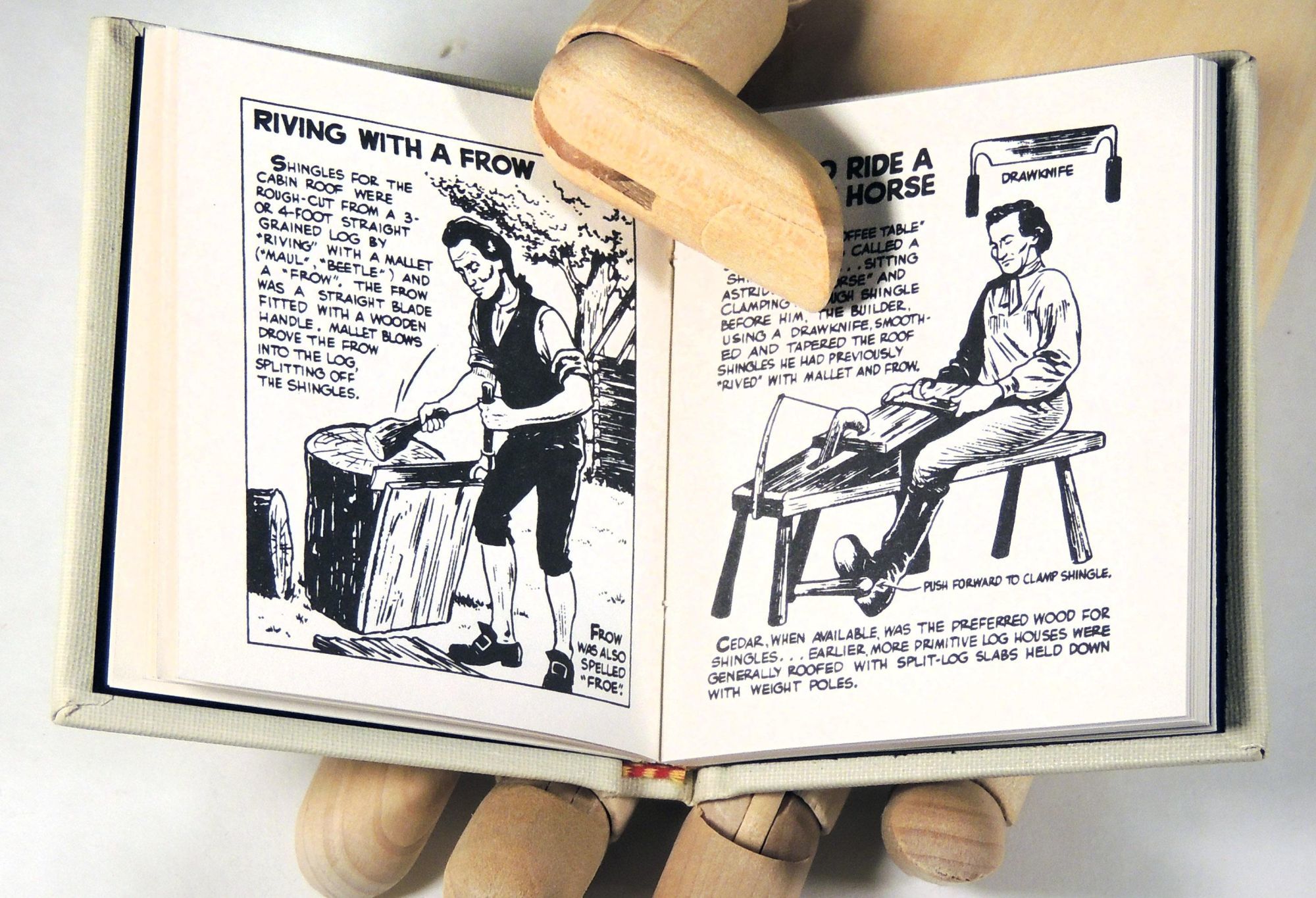 Cincinnati: Miniature Book Society / Mosaic Press and Flying Pig Press, 2002. Hardcover. Fine. Hardcover. Published as a keepsake for the Miniature Book Society Conclave XX held in 2002. A miniature book about pioneers who settled in Ohio - told through comic style drawings which originally appeared in the daily "Columbus Dispatch" as "The Ohio Adventure." The artist Jim Baker (1926-1995) grew up in Ohio and spent much of his adult life in the midwest. Light grey cloth boards with black title to spine and front panel. Clean and bright. Includes a fold out illustration of a log house pasted down to inside of rear board. Unpaginated. Size: about 3 x 3 inches. MINI/012925.