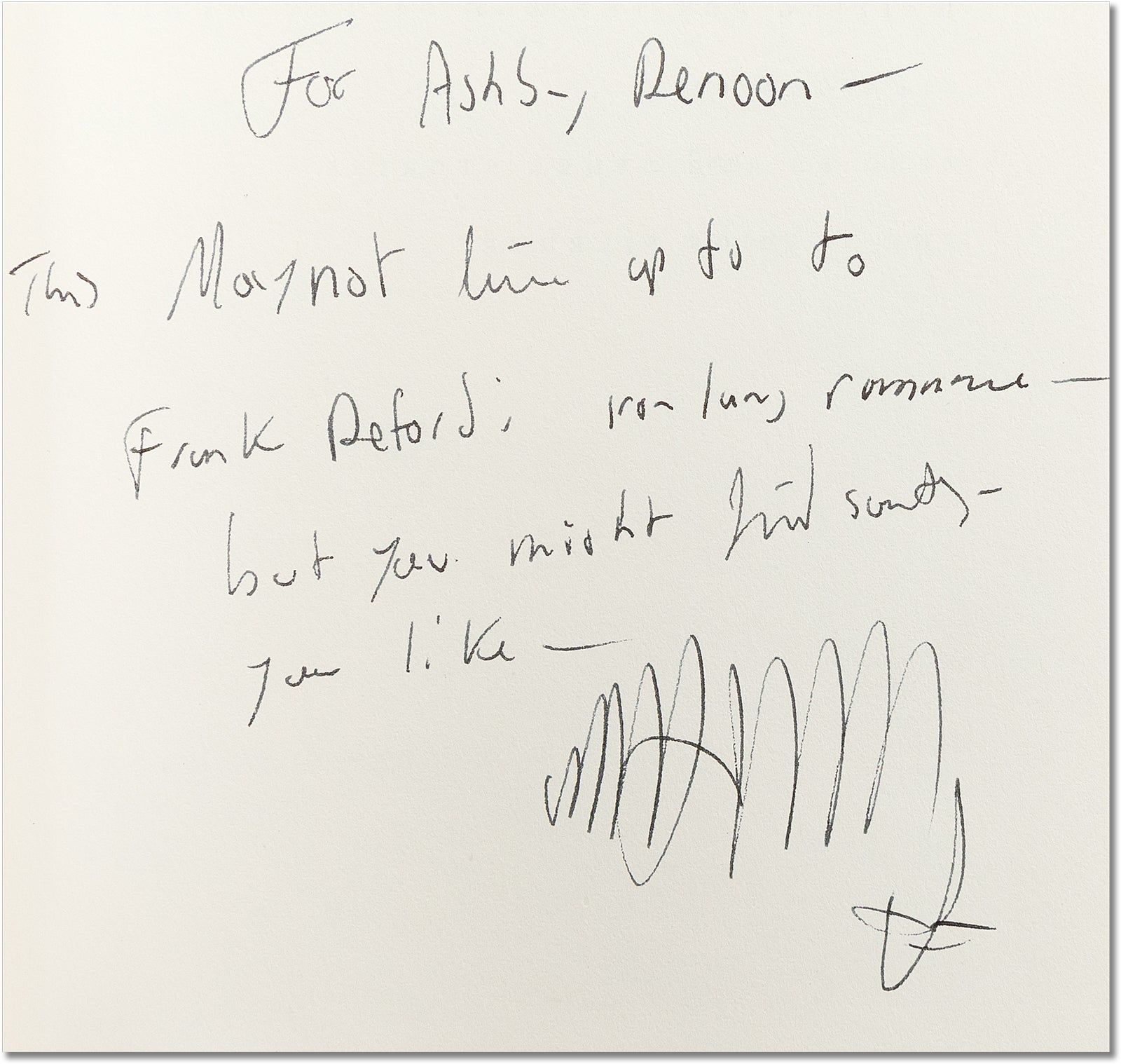New York: Ticknor & Fields, 1987. First Edition. First Printing. Octavo (21.5cm); blue cloth spine over gray paper-covered boards, with titling stamped in white on spine; dustjacket; 194pp. Inscribed on half-title: "For Ashby Denoon - This may not live up to Frank Reford's iron lung romance - but you might find something you like / Madison". Small mark to front cover with faint sunning to spine ends; Very Good+. Dustwrapper, designed by Louise Noble with painting by Mark Andres, unclipped (priced $15.95), with modest rubbing to spine panel and extremities, and tiny tear to lower rear panel; Very Good. The Tennessee author's fourth novel, set in Manhattan with romance and death. [83915].