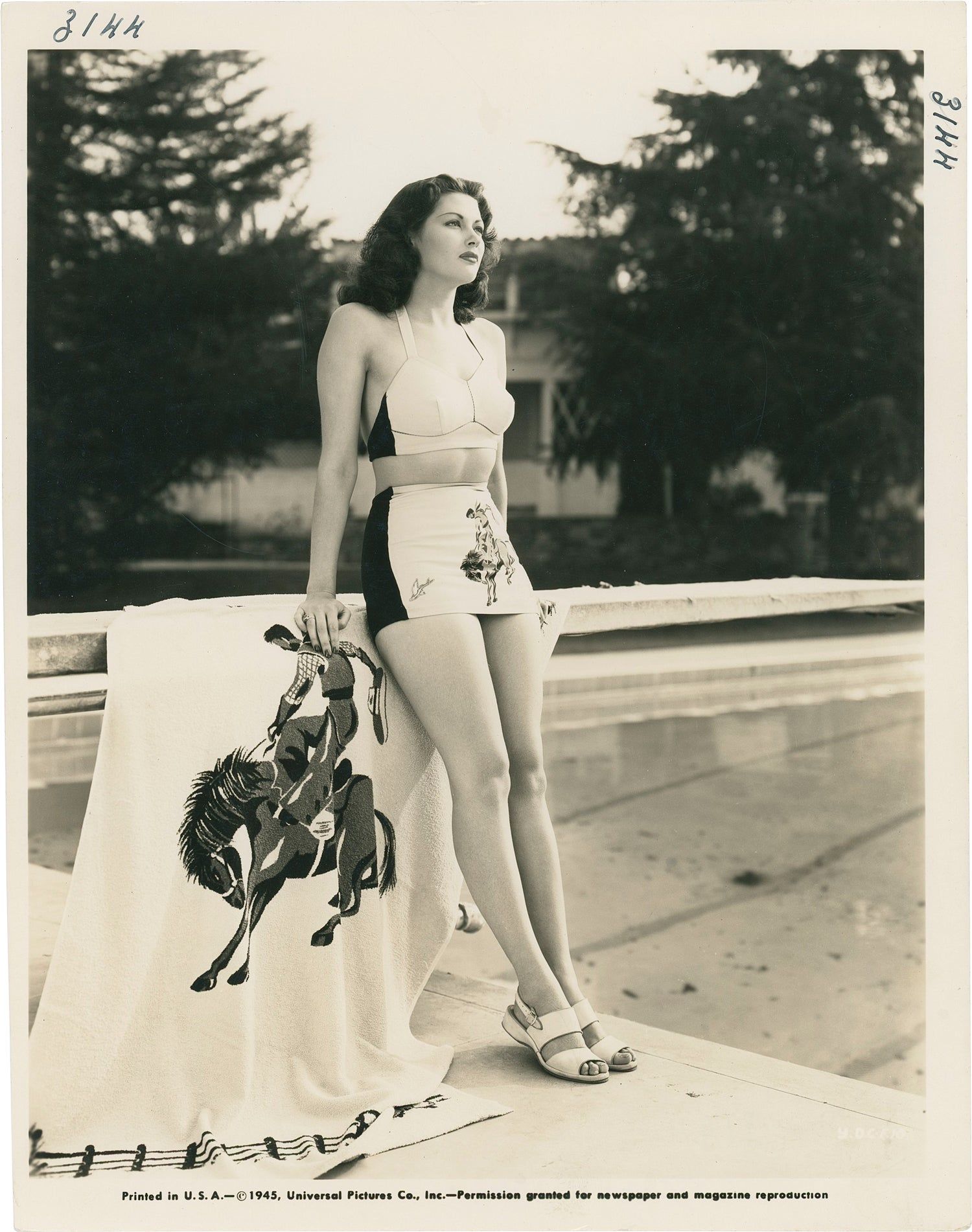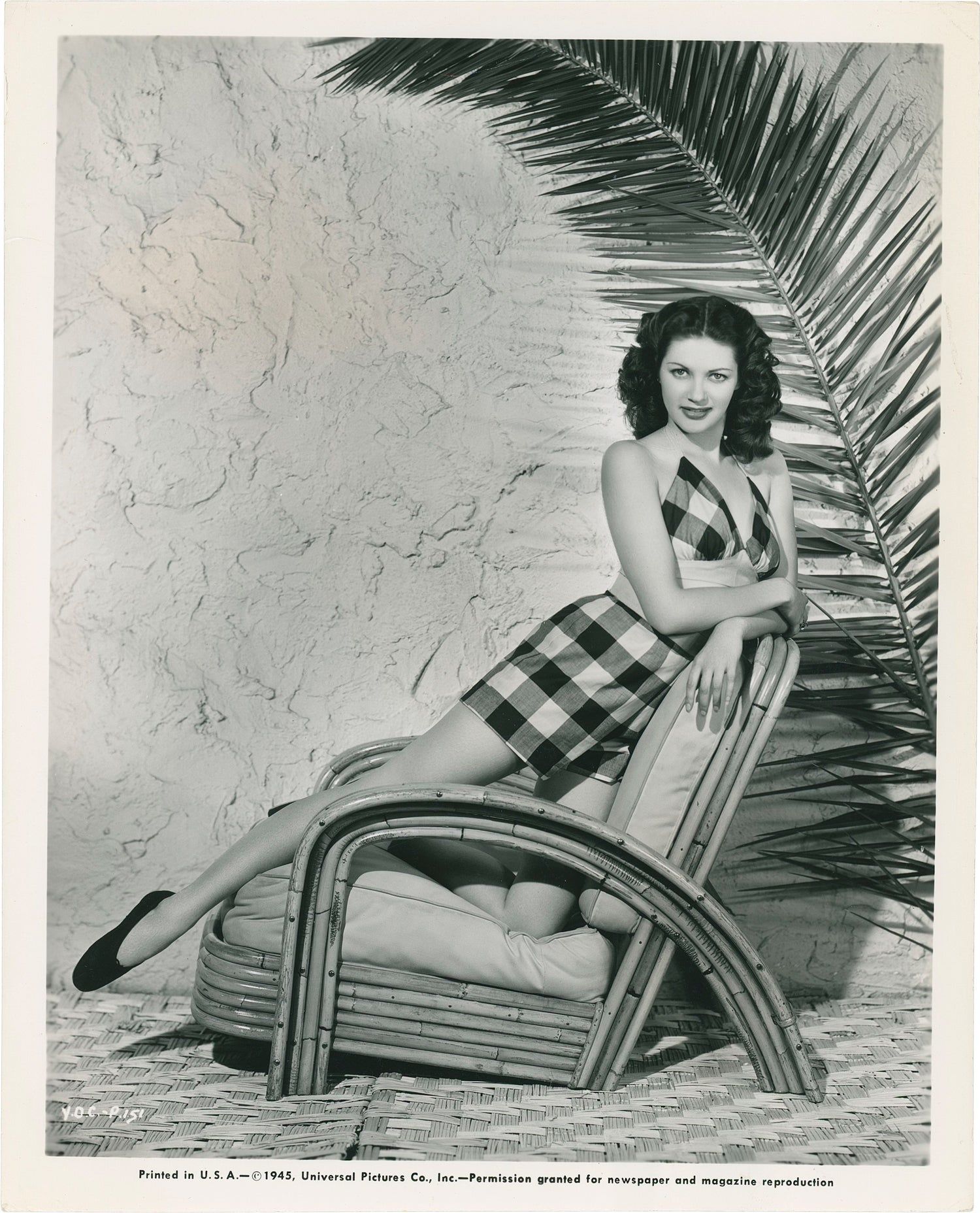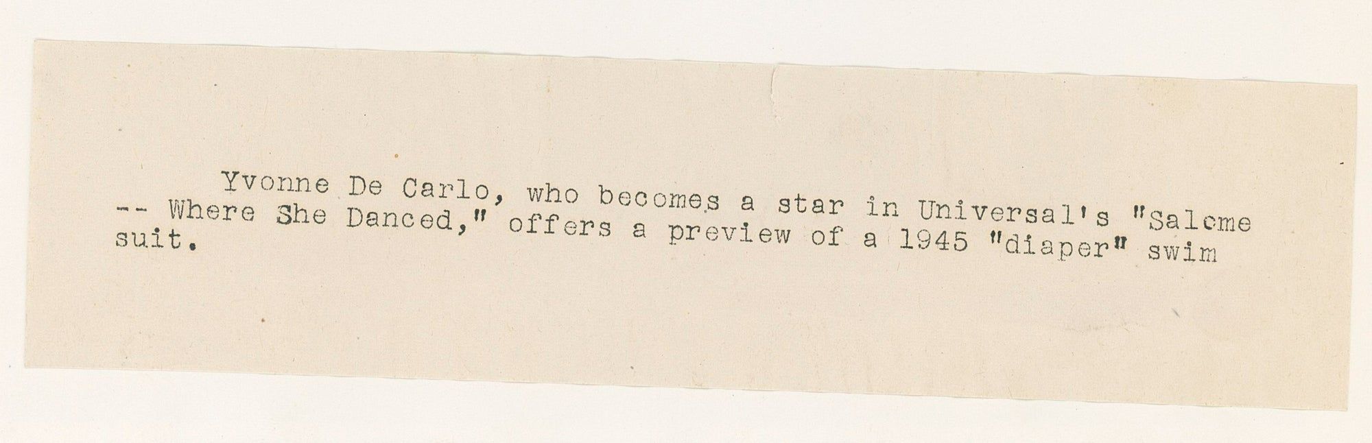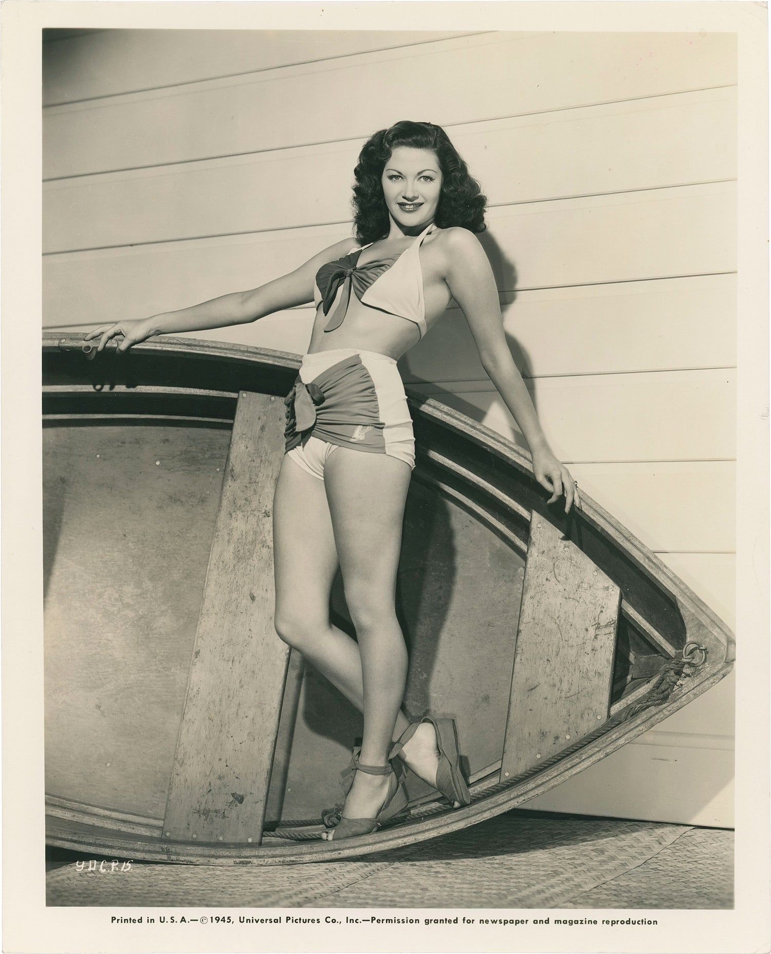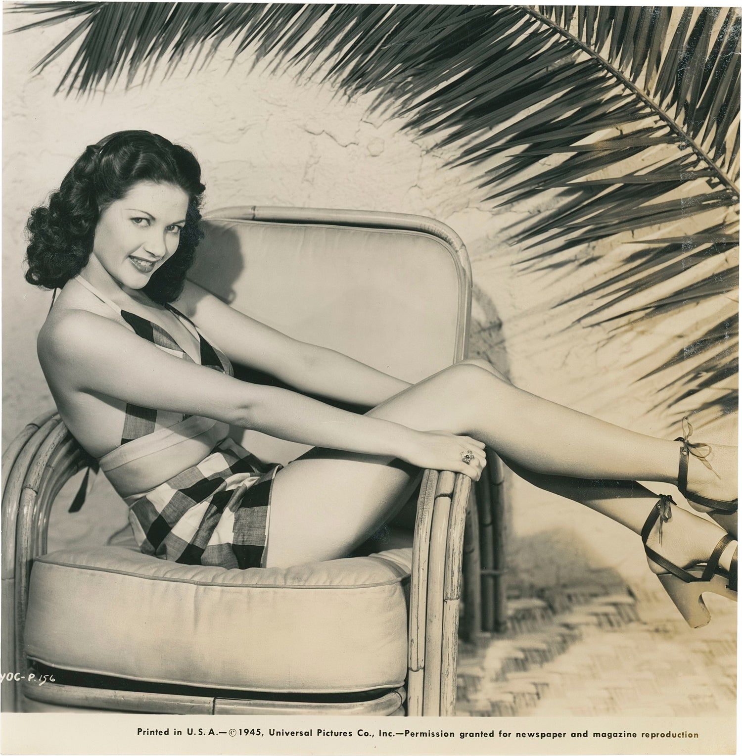 Universal City: Universal-International, 1950. Collection of ten vintage publicity photographs of Canadian-American actress and singer Yvonne De Carlo, dated variously between 1944 and 1950. Two with printed mimeo snipes on the versos, and several with provenance stamps on the same.