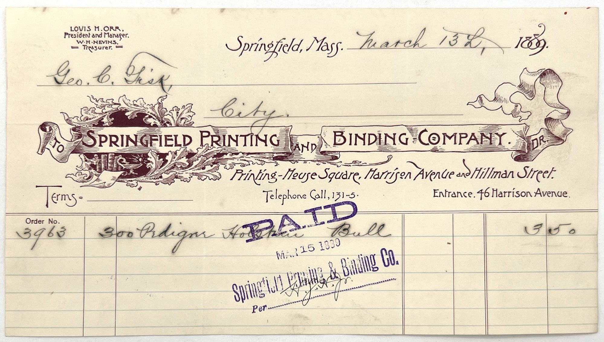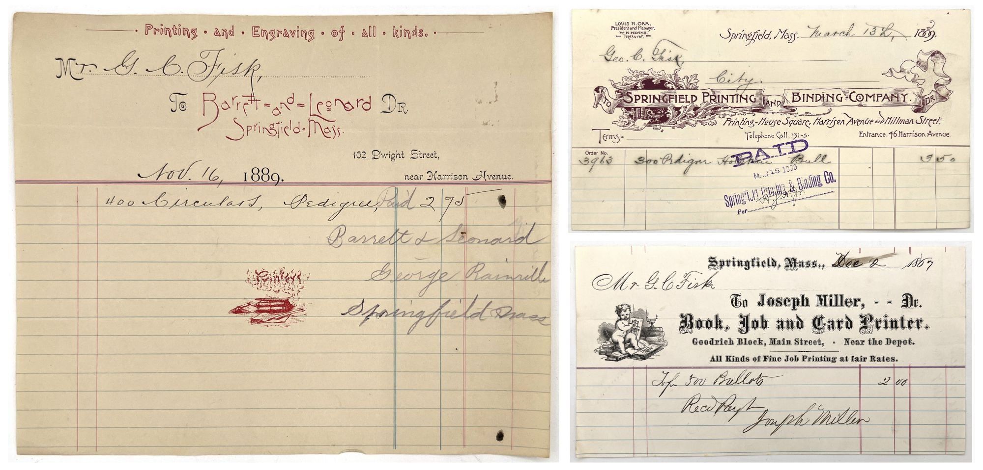 A Trio of Printers' Billheads from Springfield, Massachusetts