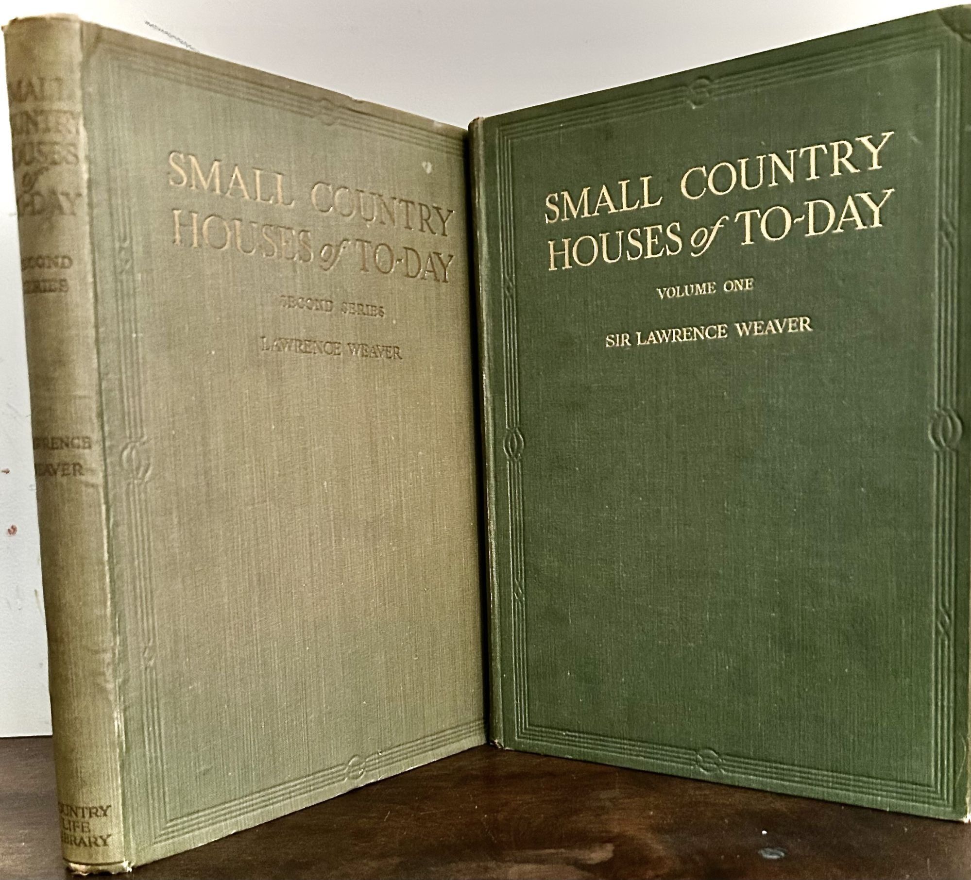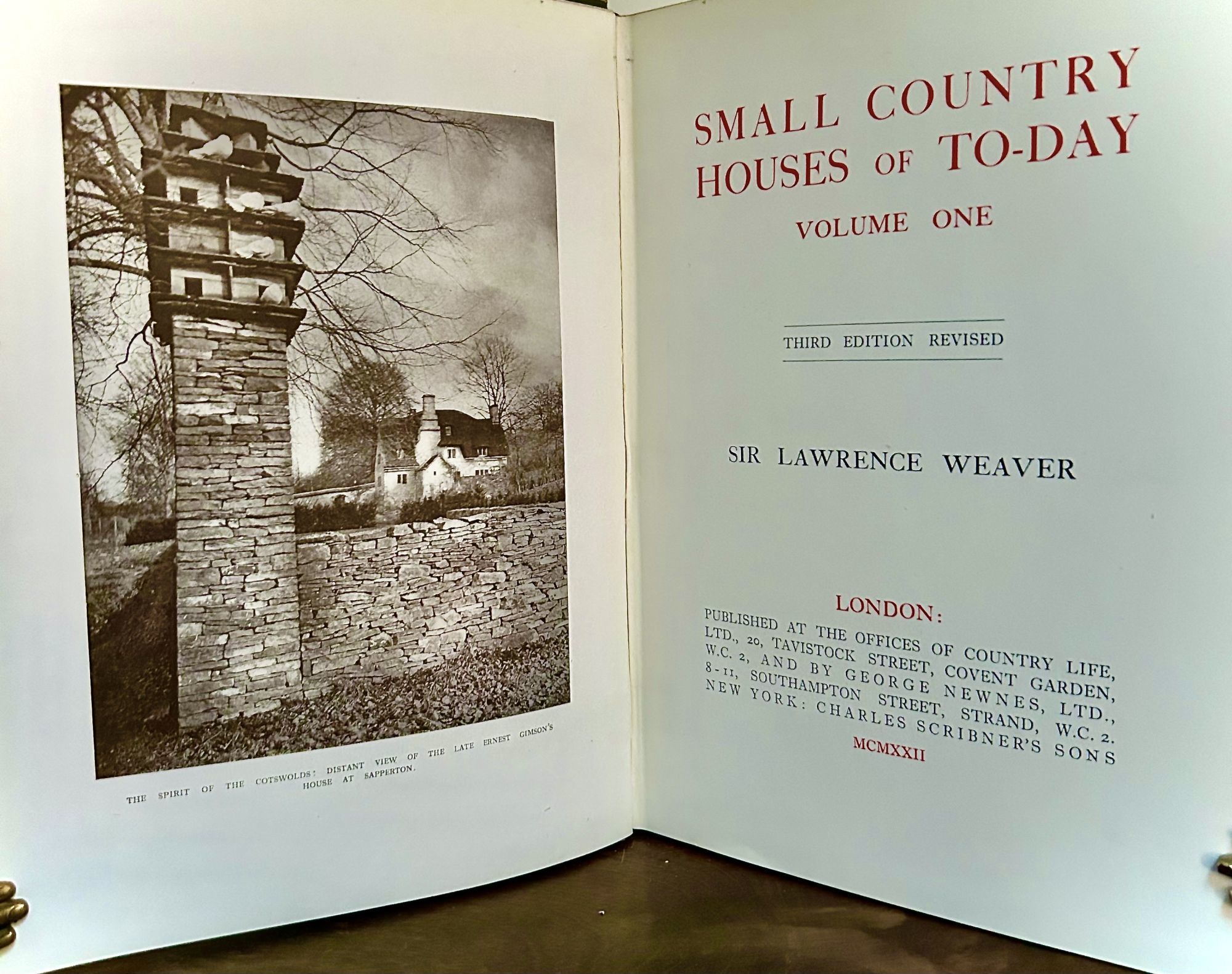 London: Country Life, 1922. Hardcover. Orig. olive green cloth spine and front cover lettered in gilt. 2 Vols. Very good. xv 222 & xv 212 pages. 29 x 22 cm. Volume I is the Third Edition Revised. Title pages printed in red and black. Host of illustrations printed on high gloss stock: photographs (interior and exterior), plats, and plans to scale. Indexes. Architects include Sir Reginald Blomfield, Baillie Scott, Guy Dawber et al. Interior contents of both volumes clean, fresh and bright. Small bookseller label pastedown front cover in both volumes with bookplate free endpaper of Vol.1.