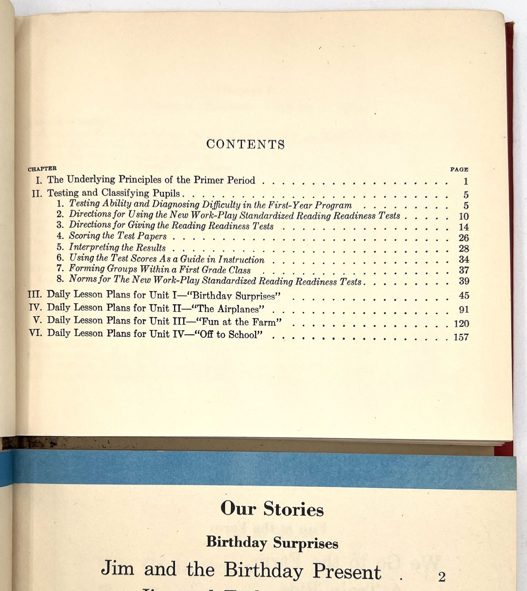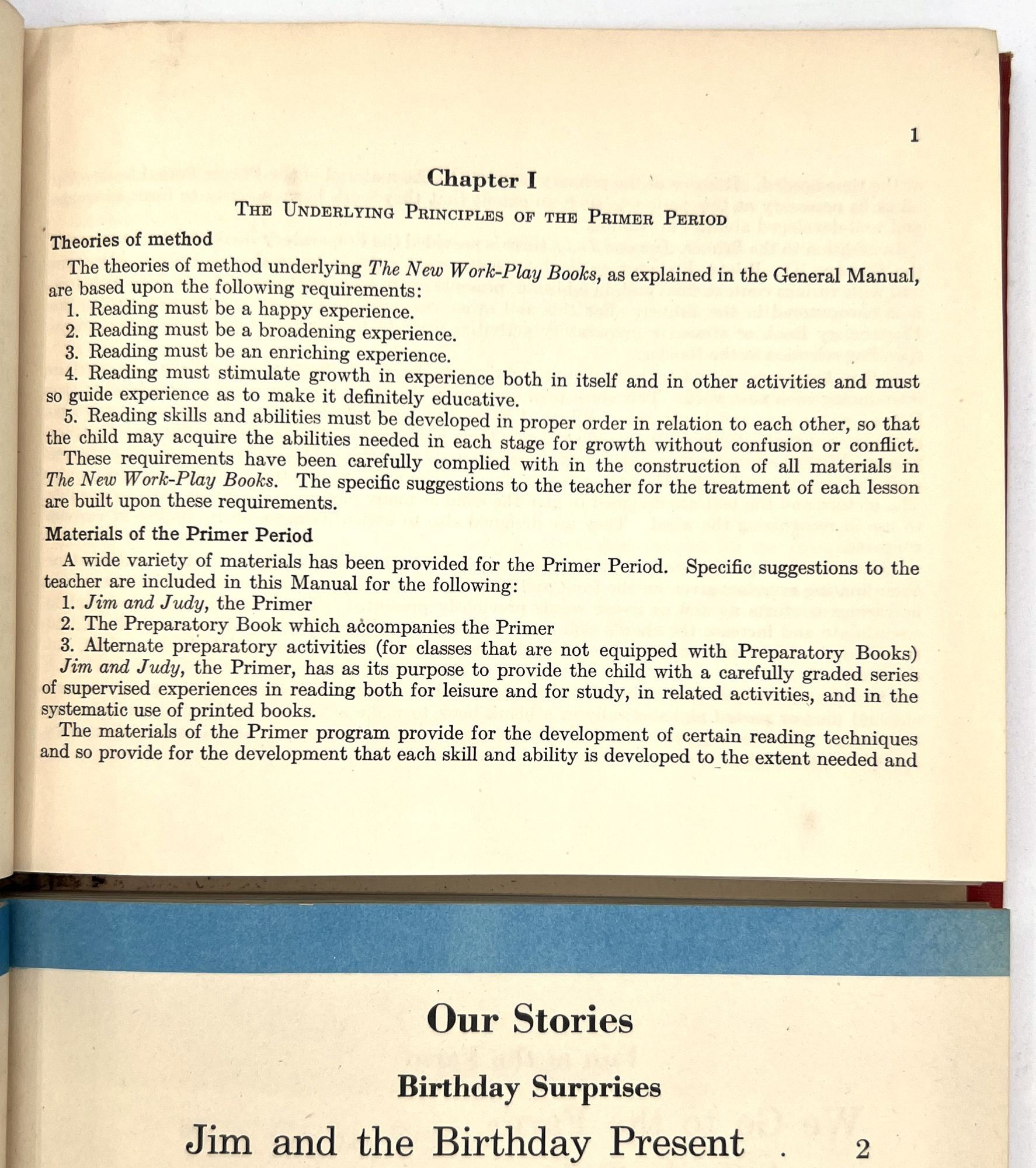 Reader-Manual for Jim and Judy by Arthur I. Gates with the assistance of Mary M. Bartlett. The New World Play Book, MacMillan Company. 1939. First edition