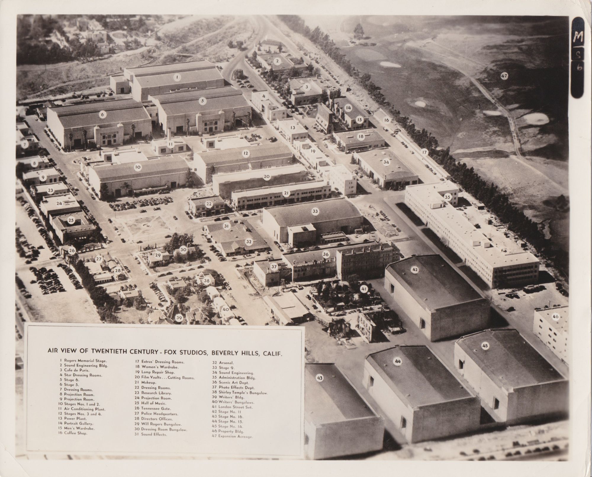 Original photograph showing an aerial view of Twentieth Century-Fox studios, circa 1936