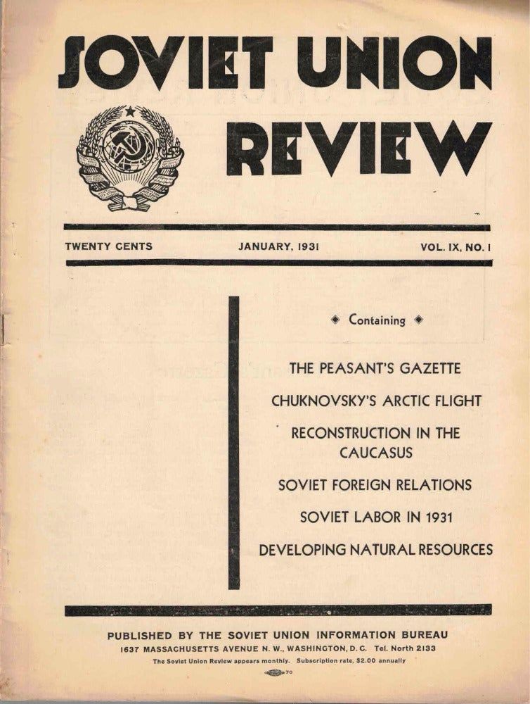 Soviet Union Review, Vol. IX No. 1, January 1931