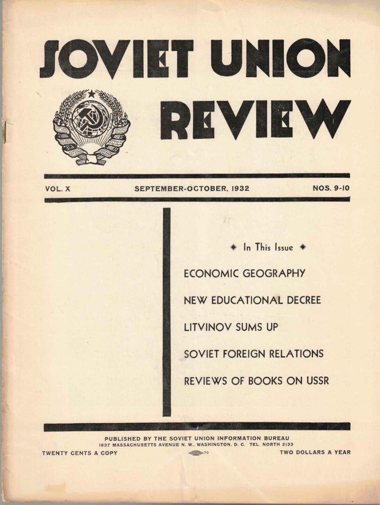 Soviet Union Review, Vol. X No. 9-10, September-October 1932
