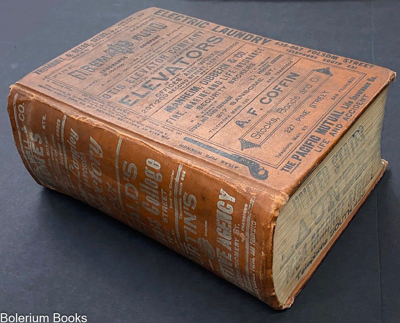 San Francisco: H.S. Crocker Company, 1901. 2208p. hardcover, cloth boards; hinges starting, neatly ex-library with internal rubberstamps; some paint or other substance on rear cover along the spine. The folded map is neatly separated but laid in; it has a closed edge tear and some splits along folds. Pre-Earthquake San Francisco directory.