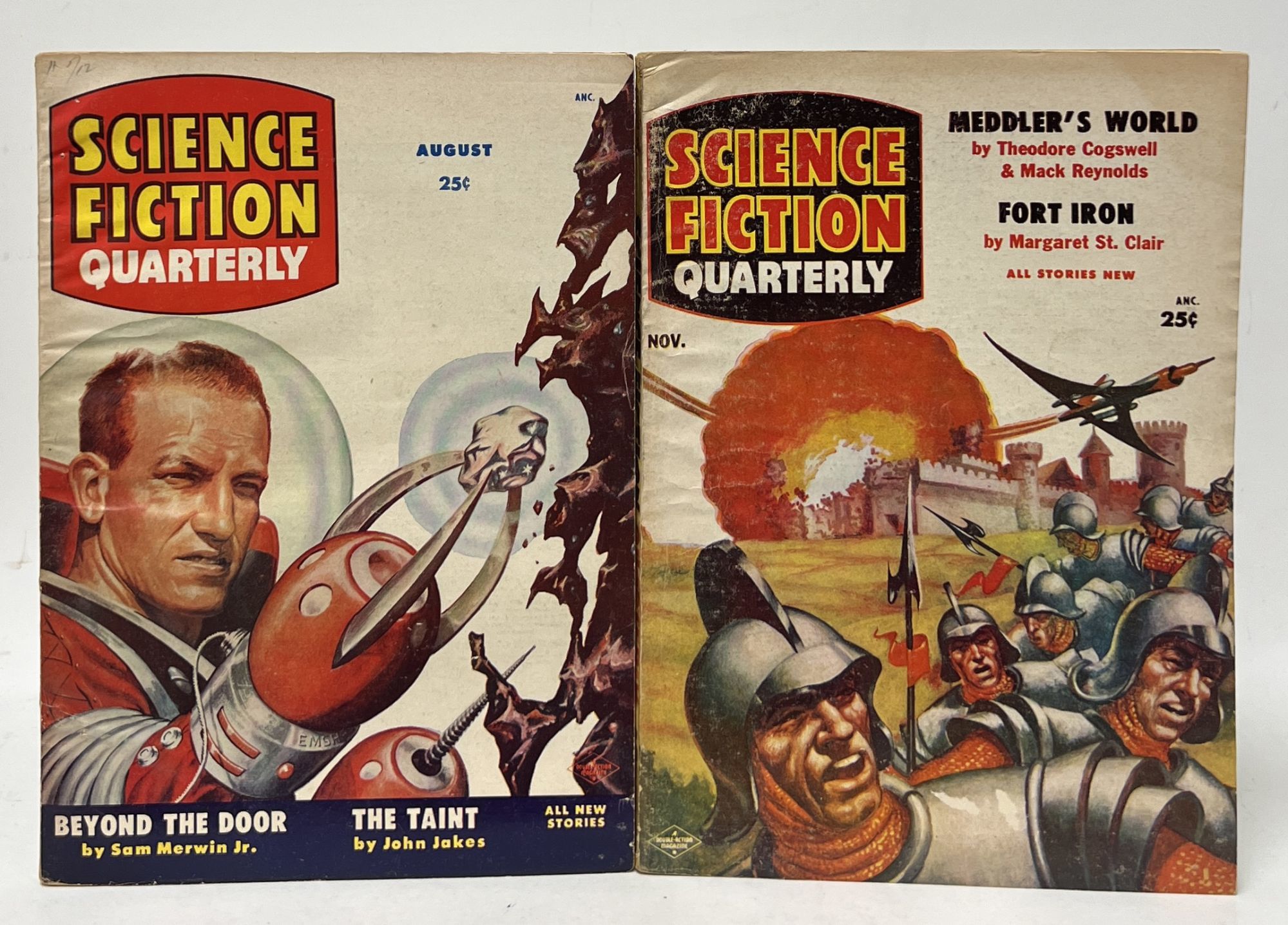 Holyoke: Columbia Publications, 1955. Paperback. Good. Complete run in four volumes. Good. Wraps generally toned and soiled, chipped at the edges. Bound with toned and brittle pages. These issues feature writing from L. Sprague de Camp, Frank Belknap Long, Damon Knight, C.M. Kornbluth, Sam Merwin, John Jakes, Margaret St. Clair, and artwork from the likes of Frank Kelly Freas.
