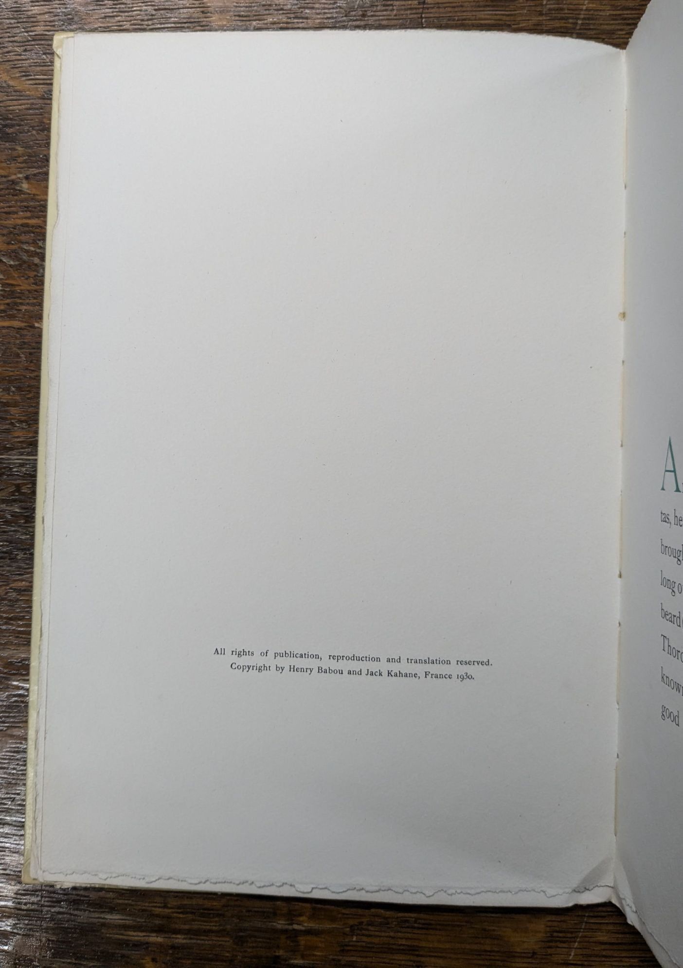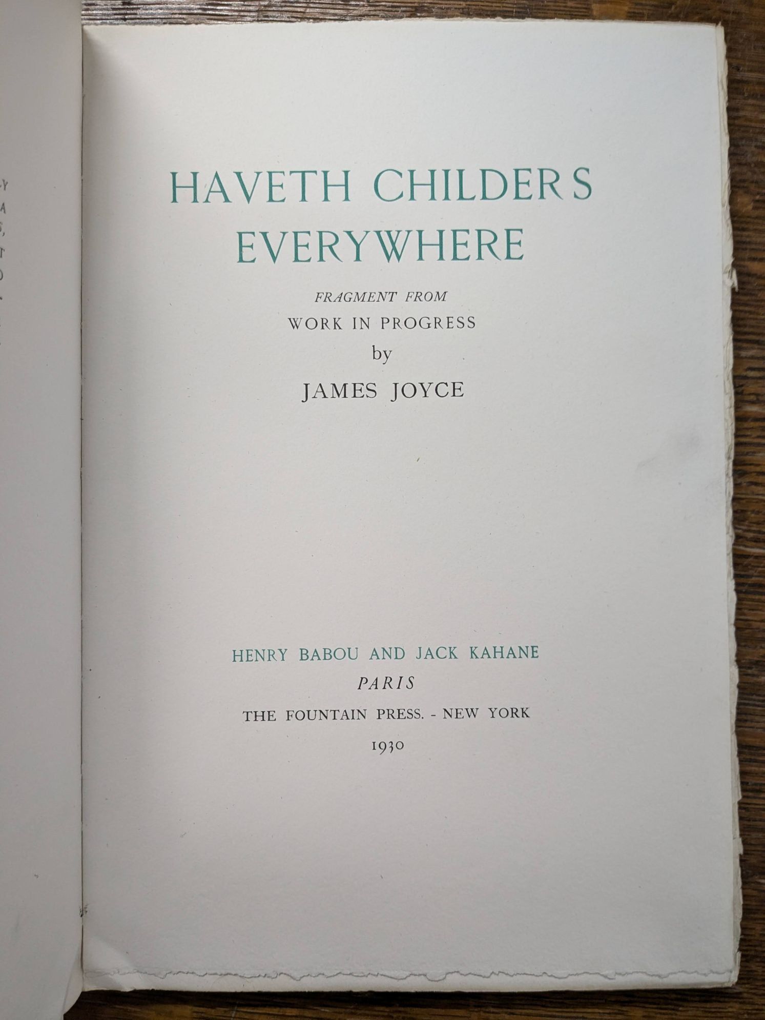 - Paris and New York: Henry Babou and Jack Kahane; The Fountain Press, 1930
