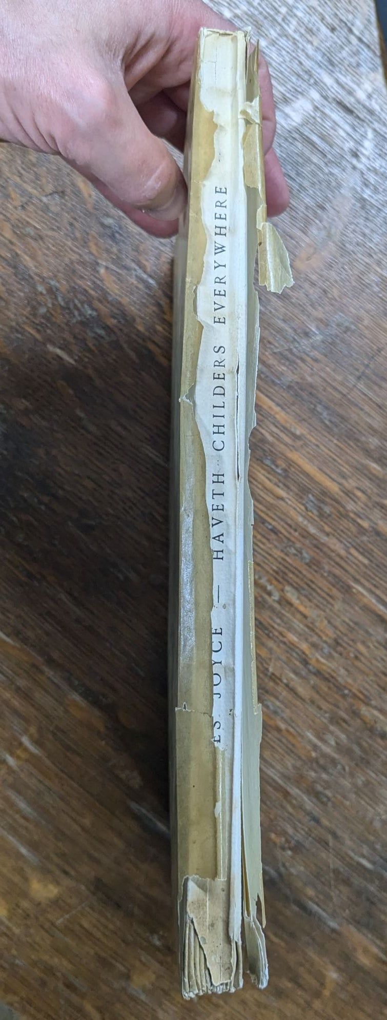 Paris and New York: Henry Babou and Jack Kahane; The Fountain Press, 1930. First edition, limited. Paperback. Good. 72pp. Small quarto [28.5 cm] Printed white wrappers. Text printed in green and black. A number of magazine clippings are mounted to the recto and verso of the front flyleaf. The text block cracked at the half title, however it is still solid. There is a previous owner's name on front flyleaf. In the glassine wrapper which is lightly soiled, and prominently torn and chipped at the spine. Lacking the slipcase. An excerpt from what would become Finnegans Wake, Joyce's masterpiece.
