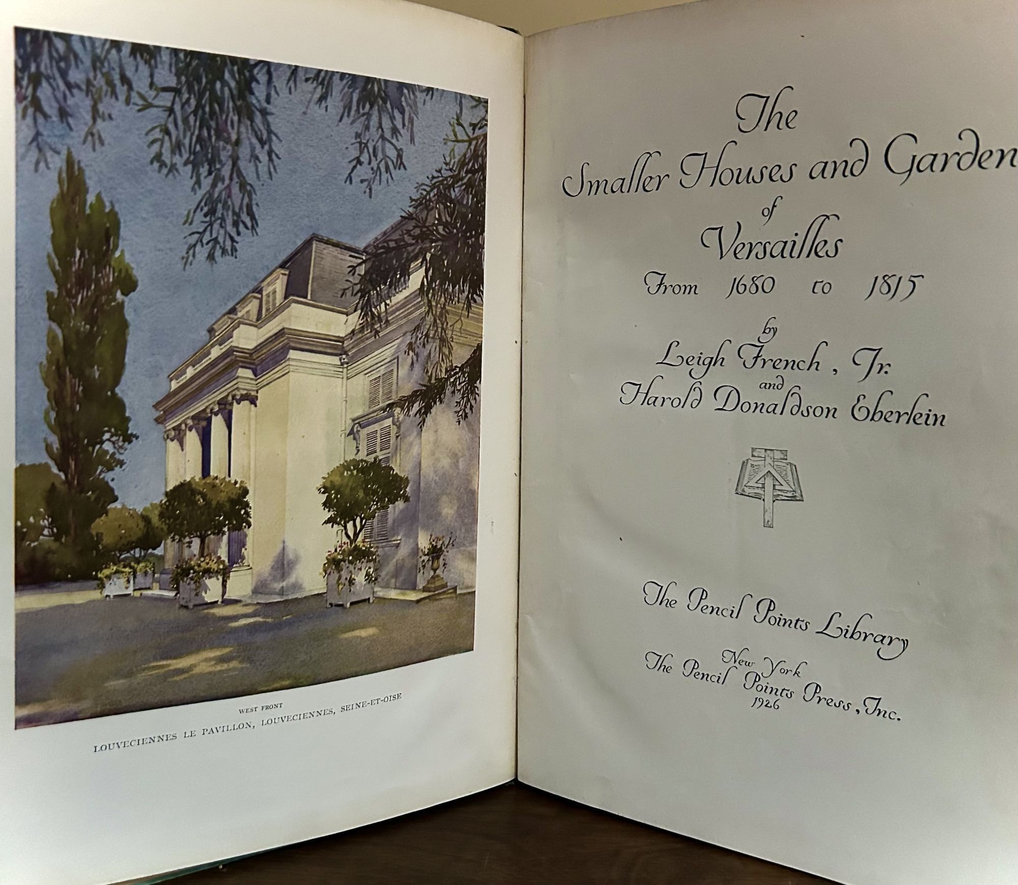 New York: Pencil Points, 1929. First edition. Hardcover. Orig. thick light blue boards and navy cloth. Front covers toned. Very good. Eighteen pages in text. 30 x 22.5 cm. Profusely illustrated with photographs, drawings to scale, and plans. French domestic architecture of the 17th and 18th centuries. Book stamp of Frederick R. Ring Architect & Frederick & Edith Ring, front cover past-down and free front endpaper. Interior contents clean, bright and printed on glossy stock.