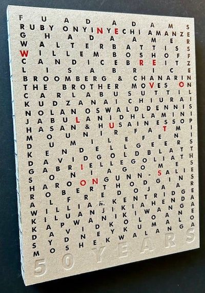Cape Town, South Africa: Goodman Gallery, 2016. Decorative Boards. Fine. An immaculate copy of the catalogue based on the June-July 2016 exhibition at Cape Town's Goodman Gallery. Clean and Fine in its wonderful decorative beige boards. Very impressive 50 year history (1966-2016) of this cutting-edge South African gallery.