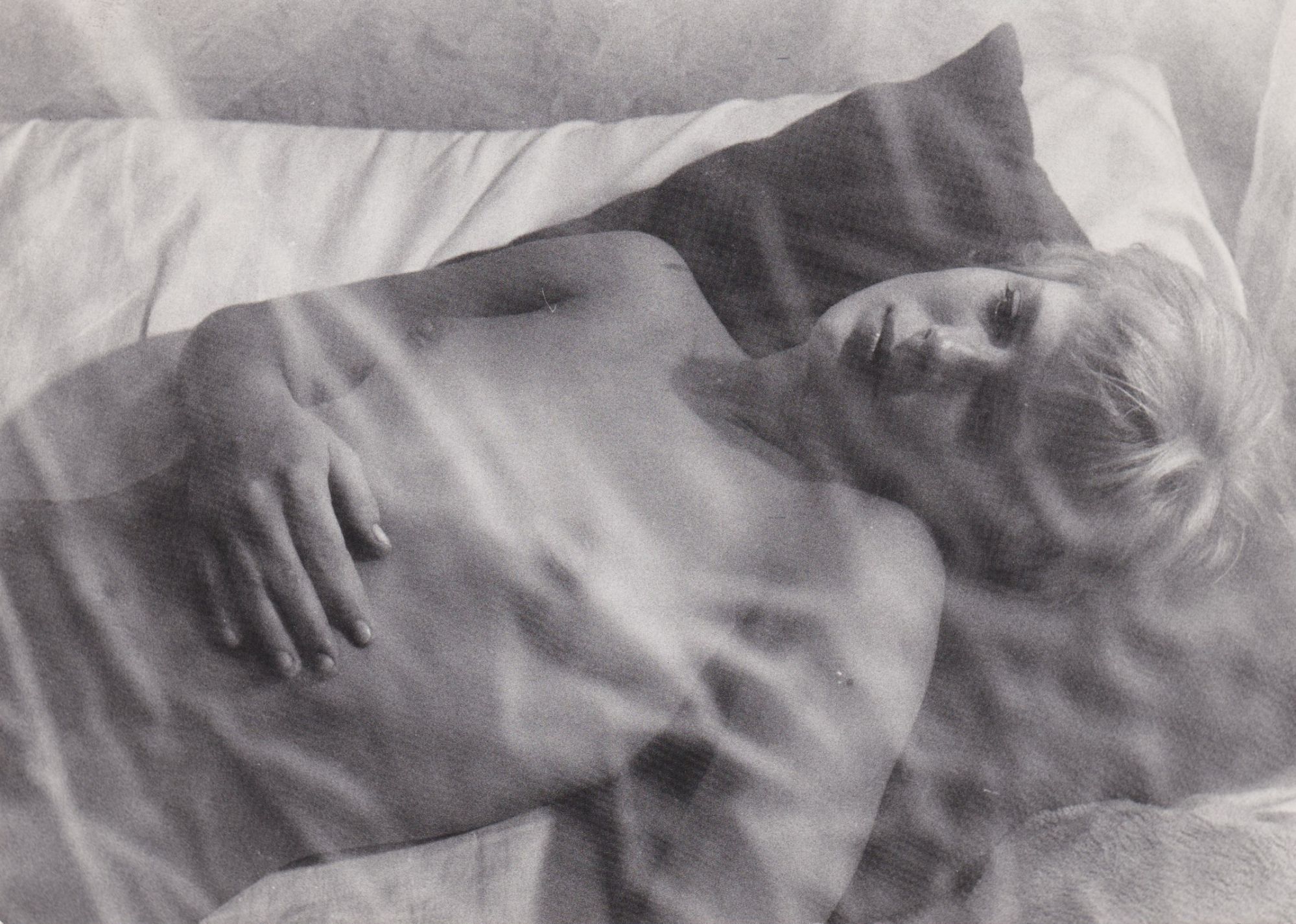 N.p.: N.p., 1969. Vintage borderless reference photograph from the 1969 film, showing a nude Mimsy Farmer. Stamp of photographer Michel Ciment on the verso.