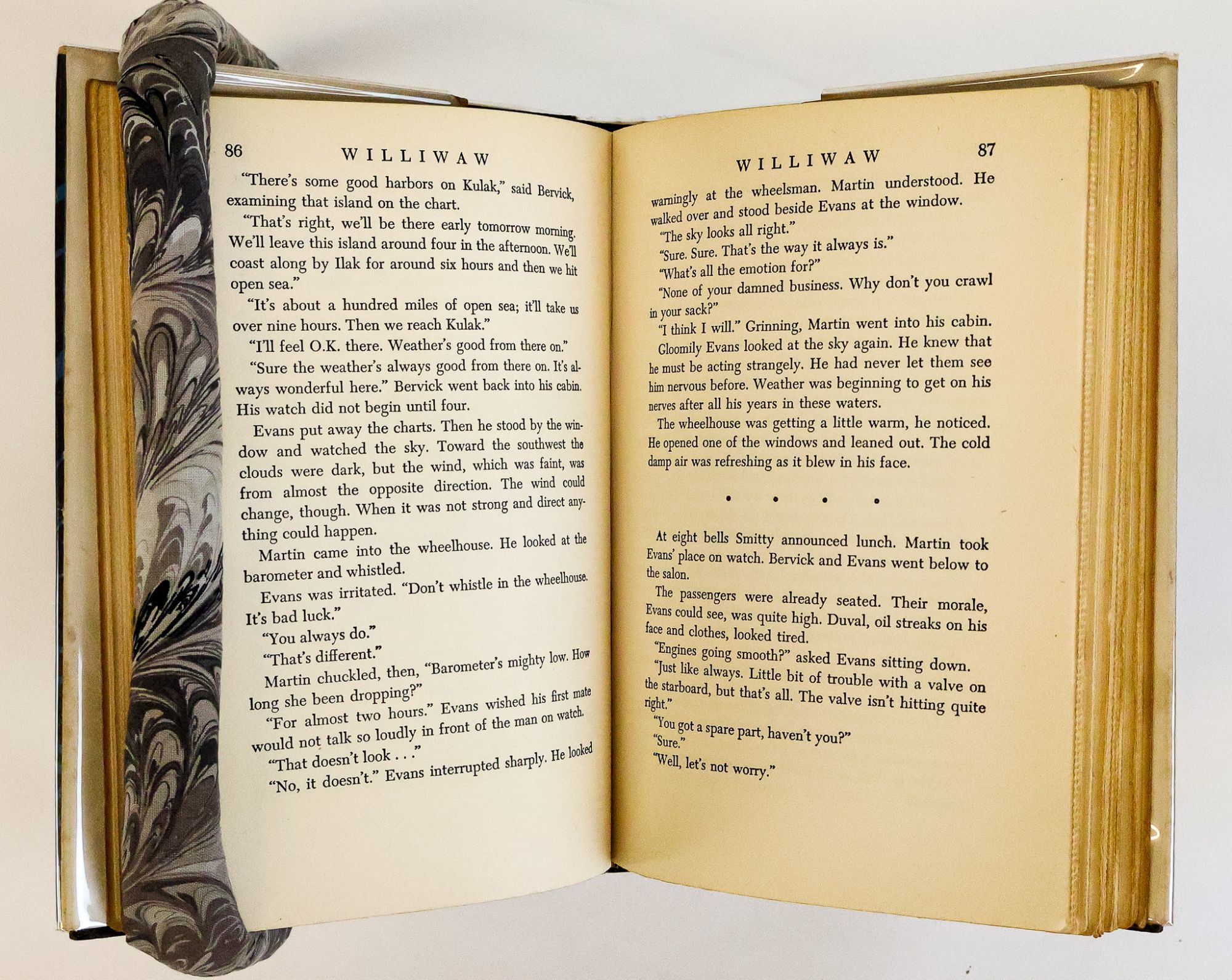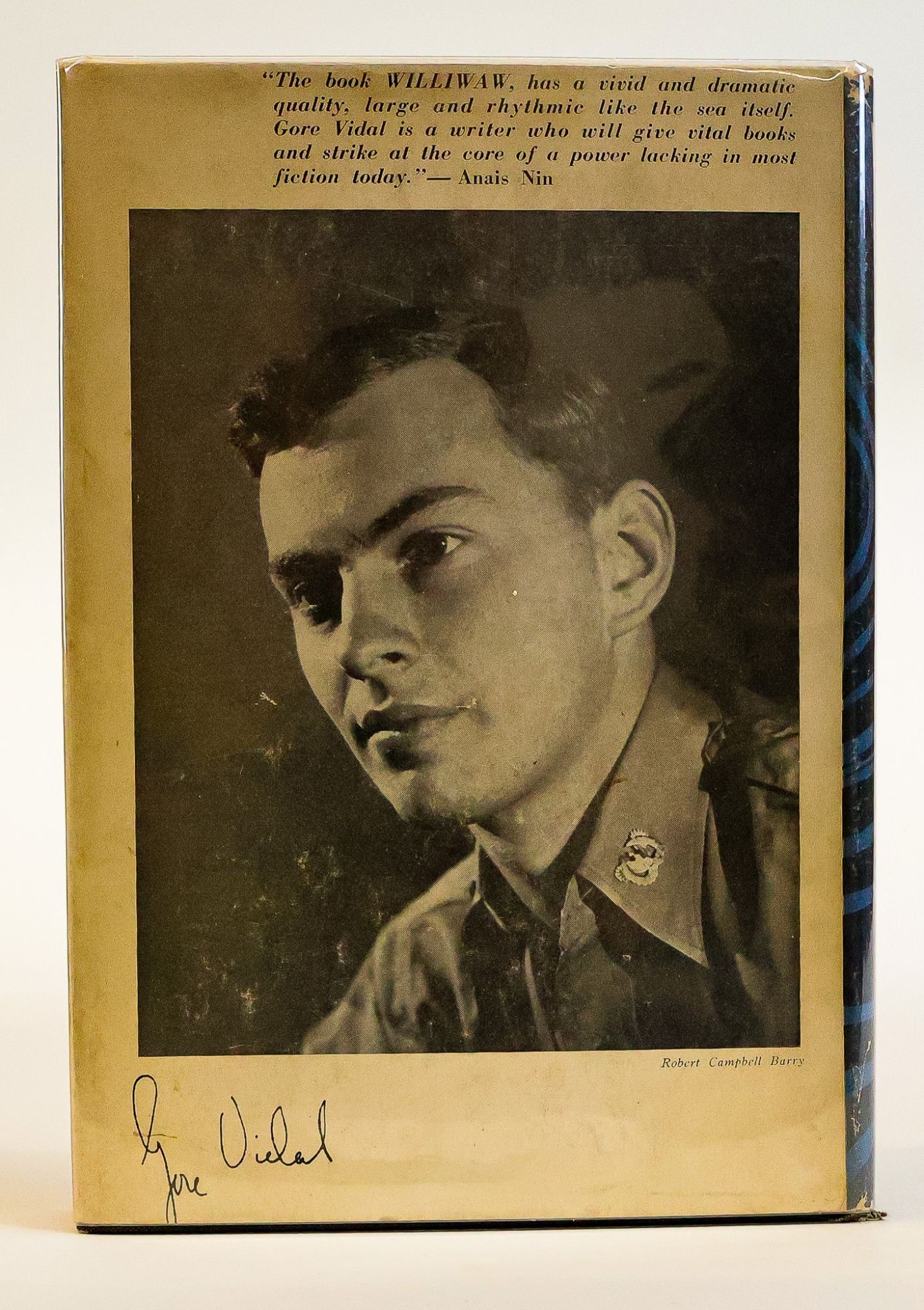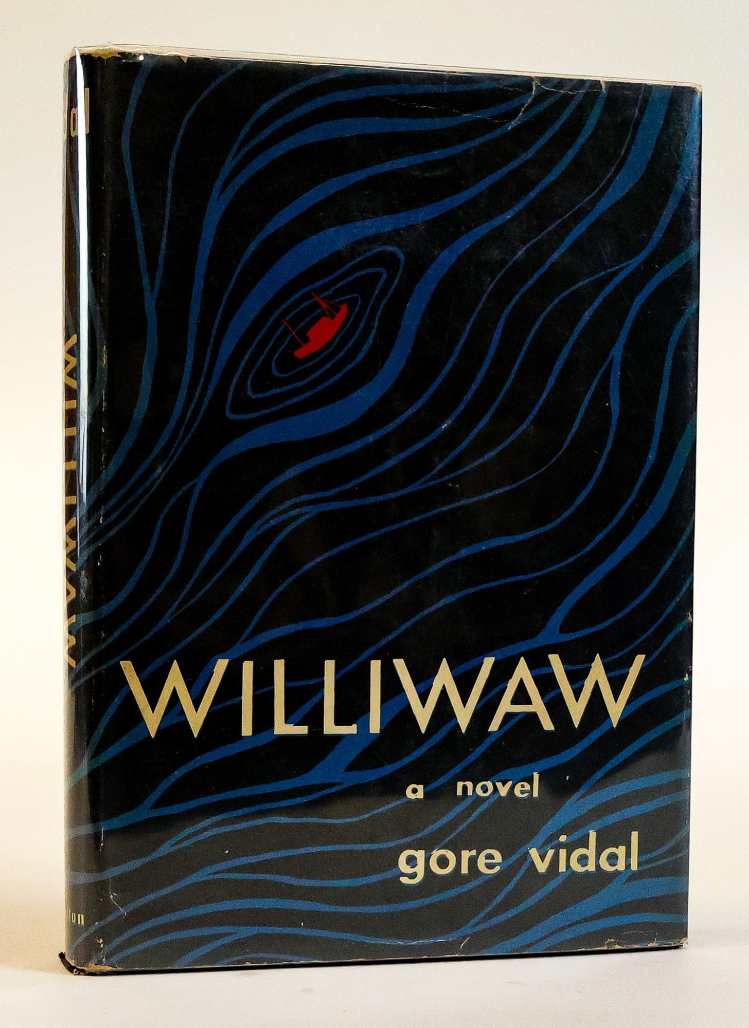 Gore Vidal's debut novel written when he was 19 serving as first mate on a ship in the Aleutian Islands. The title, "Williwaw", being a word thought to have Native American origins for a blast of wind descending from the mountains into the sea. 1393922. Special Collections.