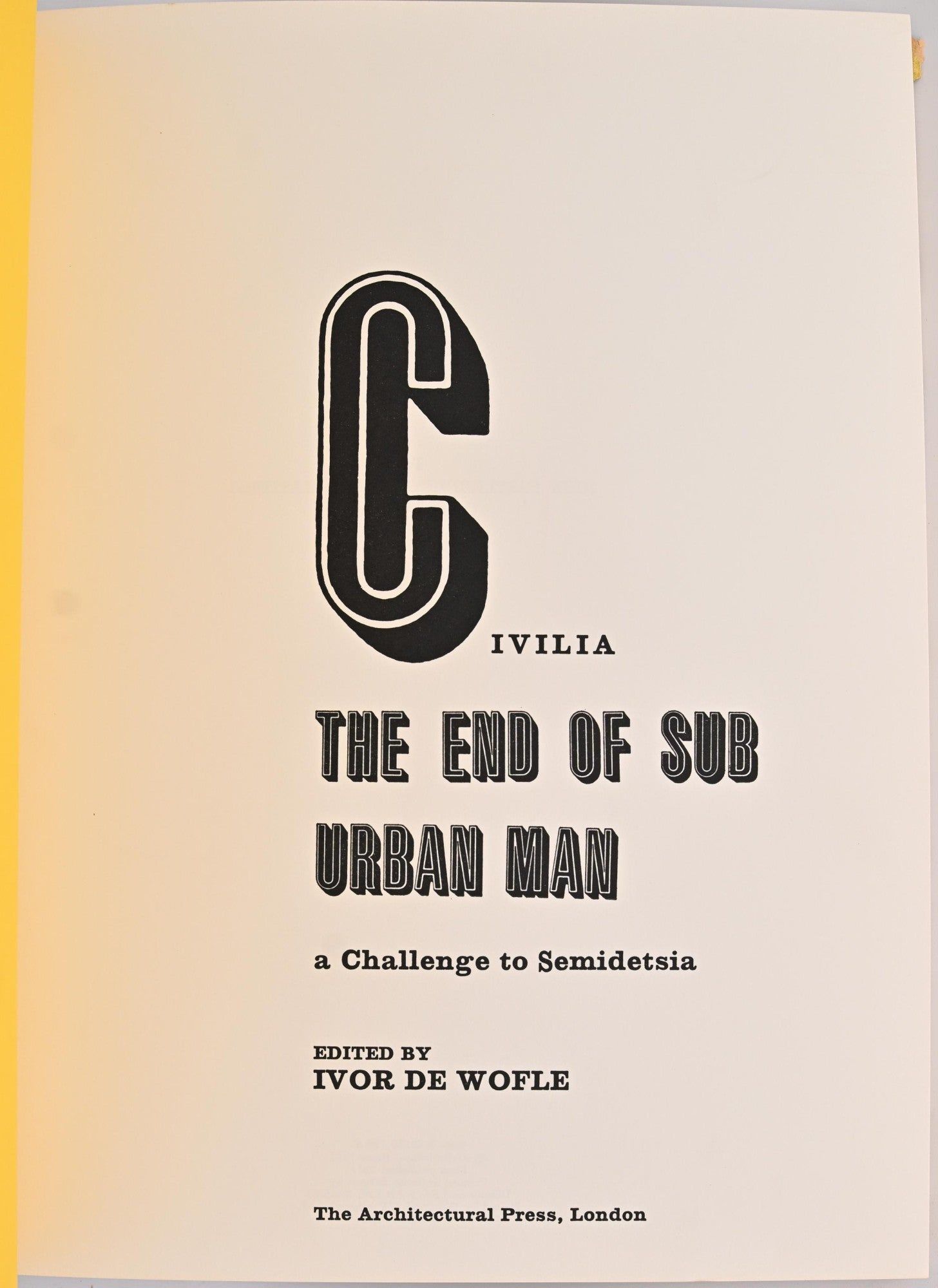London: The Architectural Press, 1971. First Edition. Hard Cover. Very Good binding/Very Good dust jacket. Quarto; in yellow linen boards with titling in gold; and with dustjacket; [2], 156 pages (4 folded), with illustrations and maps, some in color.~~An uncommon title by the great promoter of modernism. Hastings edited Architectural Review and wrote several articles for it as well as books under the pseudonym, Ivor De Wolfe. This copy with a press release from The Architectural Press laid in, as well as three photo collages by Hastings. Very Good binding / Very Good dust jacket.