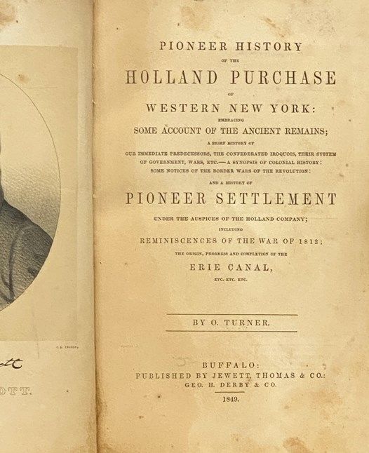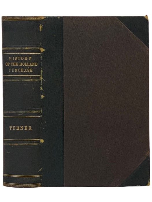 Buffalo: Jewett, Thomas & Co.: Geo. H. Derby & Co, 1849. First Edition. Half-Leather. Very Good/No Jacket. 0x0x0. First edition (Sabin 97491; Howes T-426). Likely rebound, for two reasons: we usually see this in cloth, and a Rochester book binder plate (Creed & Wilson) appears on the front endpaper. Edges a bit rubbed, tear across one illustrated plate, moderately foxed throughout, pencil name on front endpaper. 1849 Half-Leather. xvi, 666 pp. 8vo. 4 plates, 10 portraits, and 8 maps. Leather spine and corners over pebbled cloth boards, gilt titles. "The Holland Purchase is a large tract of land in what is now western portion of the U.S. state of New York. It consisted of about 3,250,000 acres (13,000 km²) of land from a line approximately 12 miles (19 km) to the west of the Genesee River to the present western border and boundary of New York State. The land bought by Holland Land Company was formed in 1796 by Wilheim Willink and a group of fellow Dutch bankers from Robert Morris. The bankers initially had hired trustees in the United States, because it was not legal at that time for them to directly own the property. Robert Morris, however, prevailed upon the New York Legislature to repeal that ordinance, which it did shortly thereafter. This area of western New York today is sometimes known as Genesee Country or the Niagara Frontier to distinguish it from the Finger Lakes region. A sales office for the Holland Land Company was opened in 1801 by surveyor and agent Joseph Ellicott in Batavia where land was sold until 1846 when the company was dissolved. Some plots of land were given to persons upon condition that they establish improvements, such as inns and taverns, to encourage growth. The office still exists and is a museum of the Holland Purchase, designated a National Historic Landmark. In 1802, the entire Holland Purchase, as well as the 500,000 acre (2,000 km²) Morris Reserve immediately to the east, was split off from Ontario County and constituted Genesee County. In the 40 years after it was erected, Genesee County was repeatedly split to form all or parts of the counties of Allegany (1806), Niagara (1808), Cattaraugus (1808), Chautaqua (1808), Erie (1821), Monroe (1821), Livingston (1821), Orleans (1824), and Wyoming (1841)." -- Wikipedia FULL TITLE: Pioneer History of the Holland Purchase of Western New York, Embracing Some Account of the Ancient Remains; A Brief History of Our Immediate Predecessors, the Confederated Iroquois, Their System of Government, Wars, Etc. - A Synopsis of Colonial History: Some Notices of the Border Wars of the Revolution: and a History of Pioneer Settlement under the Auspices of the Holland Company; Including Reminiscences of the War of 1812; the Origin, Progress and Completion of the Erie Canal, Etc., Etc. Etc.