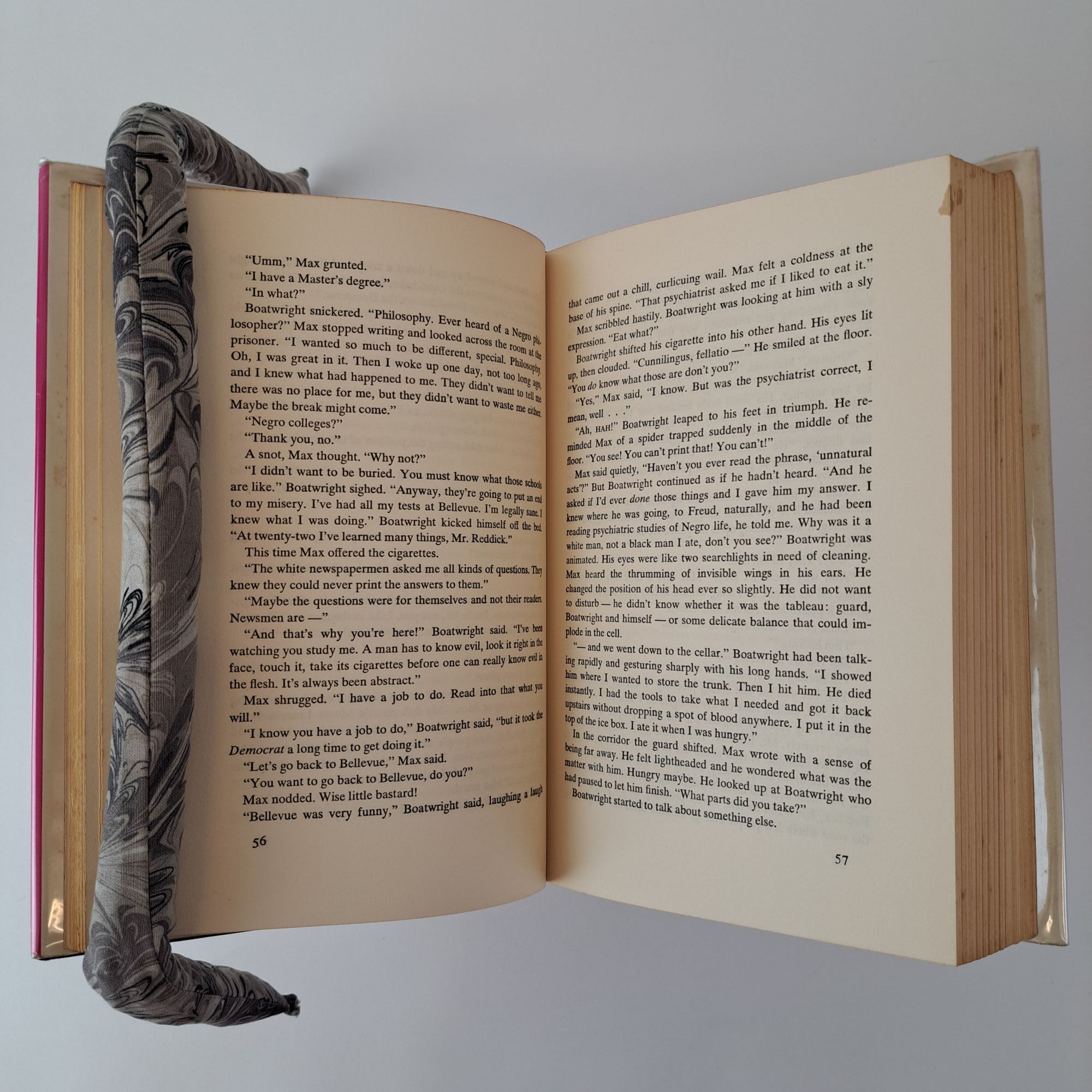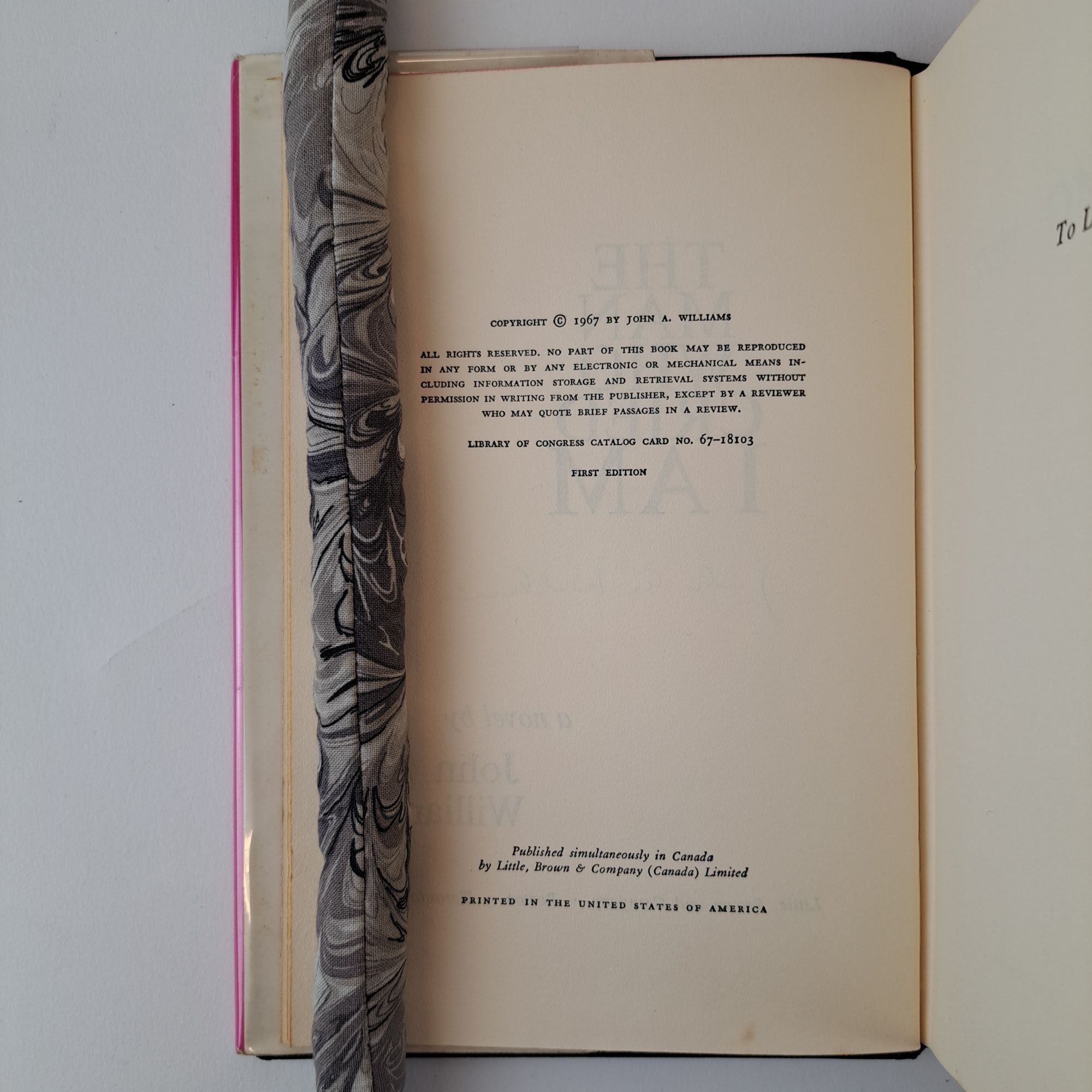 Boston, MA: Little, Brown and Company, 1967. First Edition, First Printing. Hardcover. Octavo, 403 pages. In Very Good minus condition with a Very Good minus condition dust jacket. Pink spine with pink and black lettering. Dust jacket is wrapped in a mylar covering, price uncut "$6.95", has rubbing wear, a tear along the front head and tail edge, mild bending wear and chipping along the spine, and light stains. Boards are slightly warped, has mild bending along the spine head/tail, rear head fore corner, and front tail fore corner, and light scuff marks. Textblock has light soiling on some pages throughout, creasing on page 403, stains along the end-pages, on the copyright page to page 7 and along the edges, and a pen inscription from a previous owner on the front end-page. Signed flat by John A. Williams on the title page. Shelved in Room C. 1394200. Special Collections.