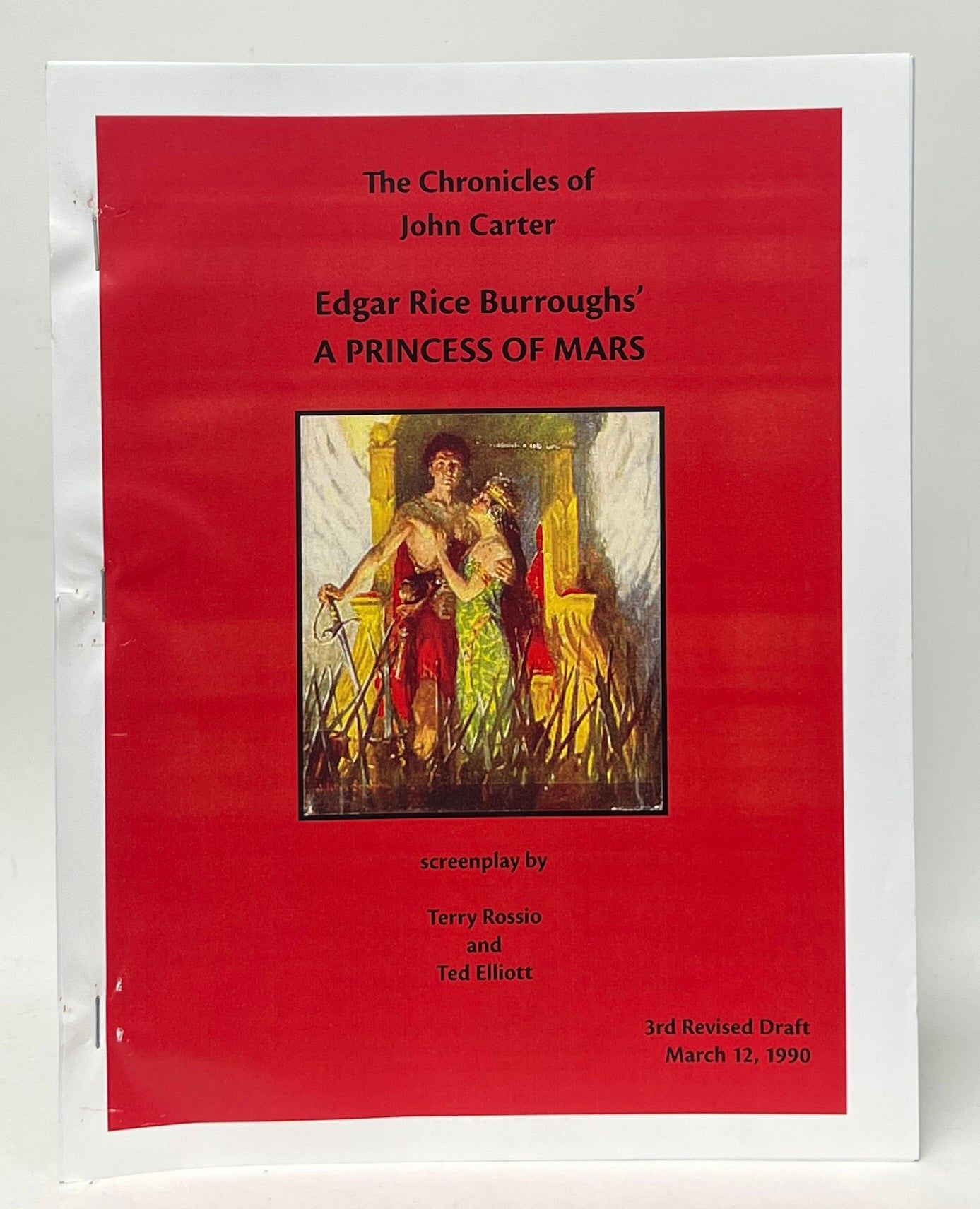 [n.p.]: [n.p.], 1990. Paperback. Near Fine. t.p., [1]-126. Near Fine. Glossy front cover, a few scuffs and stains near the staples, with copy paper otherwise. Bound with a slight skew, clean internally. The 3rd revised draft of this unproduced screenplay based on the first novel in the Barsoom series. From the collection of Joan Bledig.