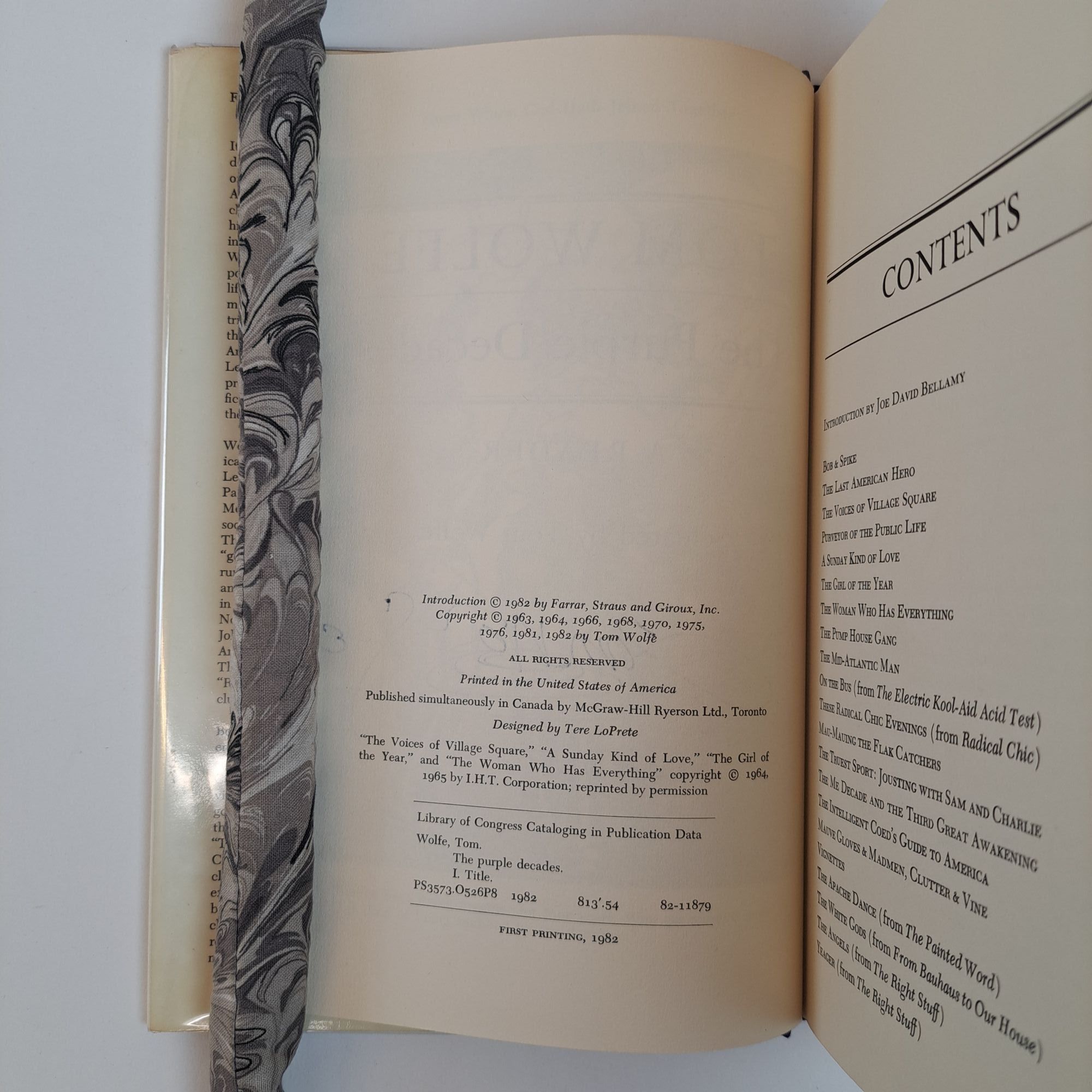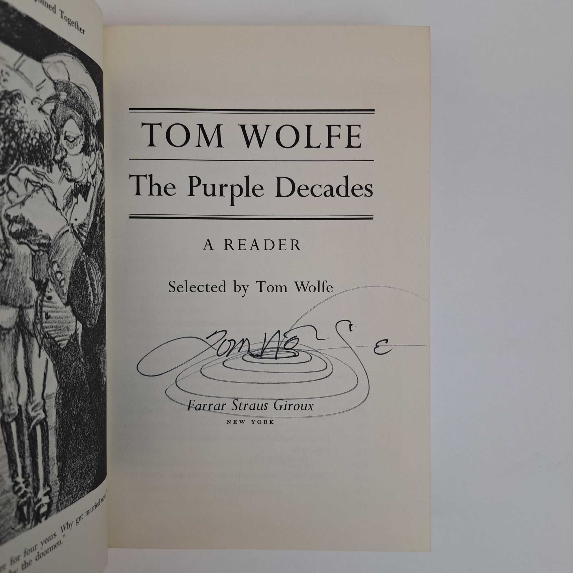 New York, NY: Farrar, Straus and Giroux, Inc, 1982. First Edition, First Printing. Hardcover. Octavo, xvi, 396 pages. In Very Good condition with a Very Good minus condition dust jacket. Aged white spine with black and pink lettering. Dust jacket is wrapped in a mylar covering, price is uncut "$17.50", has mild shelving wear, and mild age-toning throughout. Boards have mild wear along the head and tail edges. Textblock has pen and pencil marks on the front end-page, mild wear along the edges, and light foxing along the head and tail edges. Signed by Tom Wolfe with ripple effect on title page. Shelved Room C. 1394283. Special Collections.