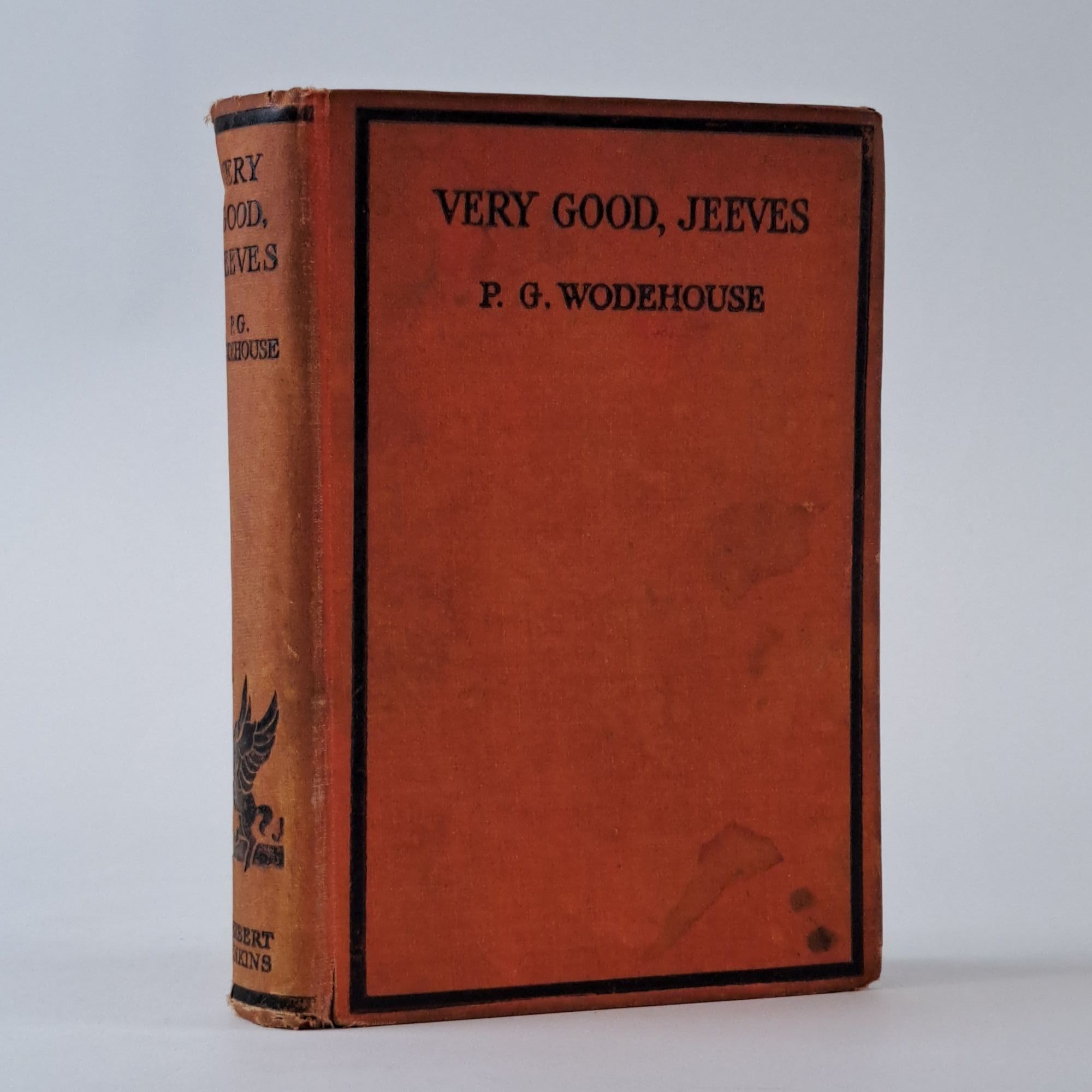 London, UK: Herbert Jenkins Limited, 1930. First Edition, First Printing. Hardcover. Octavo, xi, 312 pages. In Good minus condition lacking the issued dust jacket. Spine is bound in publisher's orange cloth with black lettering. Boards have significant tears and fraying along the corners, stains and rubbing wear throughout. Textblock has stains and tears on some pages throughout, splitting along the gutter in several places throughout, creasing on pages 91, 198, 256, 282, pen mark on page 144, pencil inscription from a previous owner on the front end-page, age toning and stains along the pastedown pages, end-pages and edges. Shelved in Room C. 1394293. Special Collections.