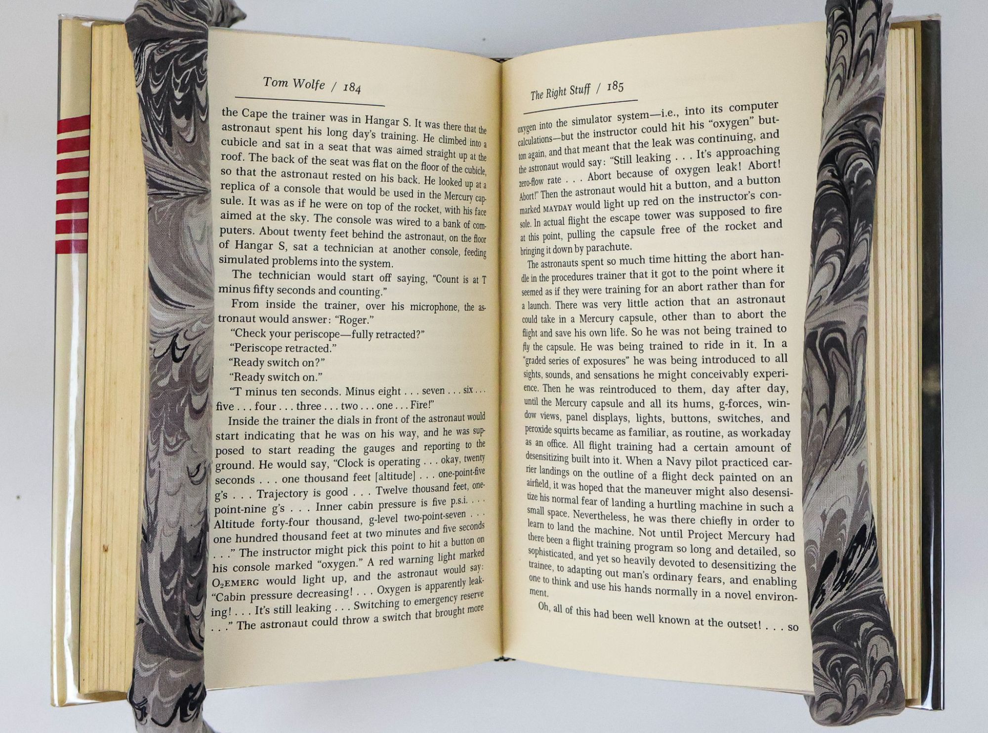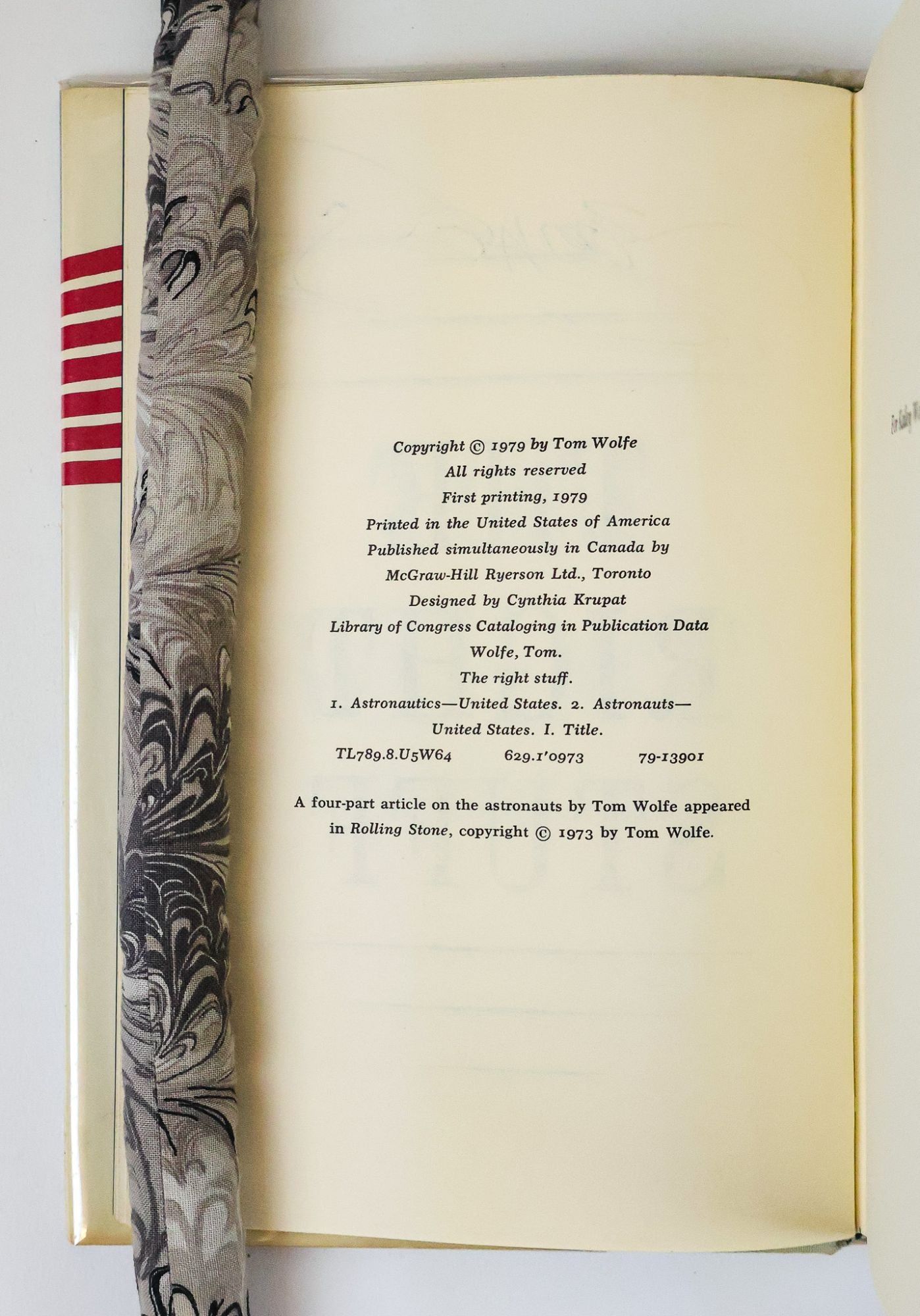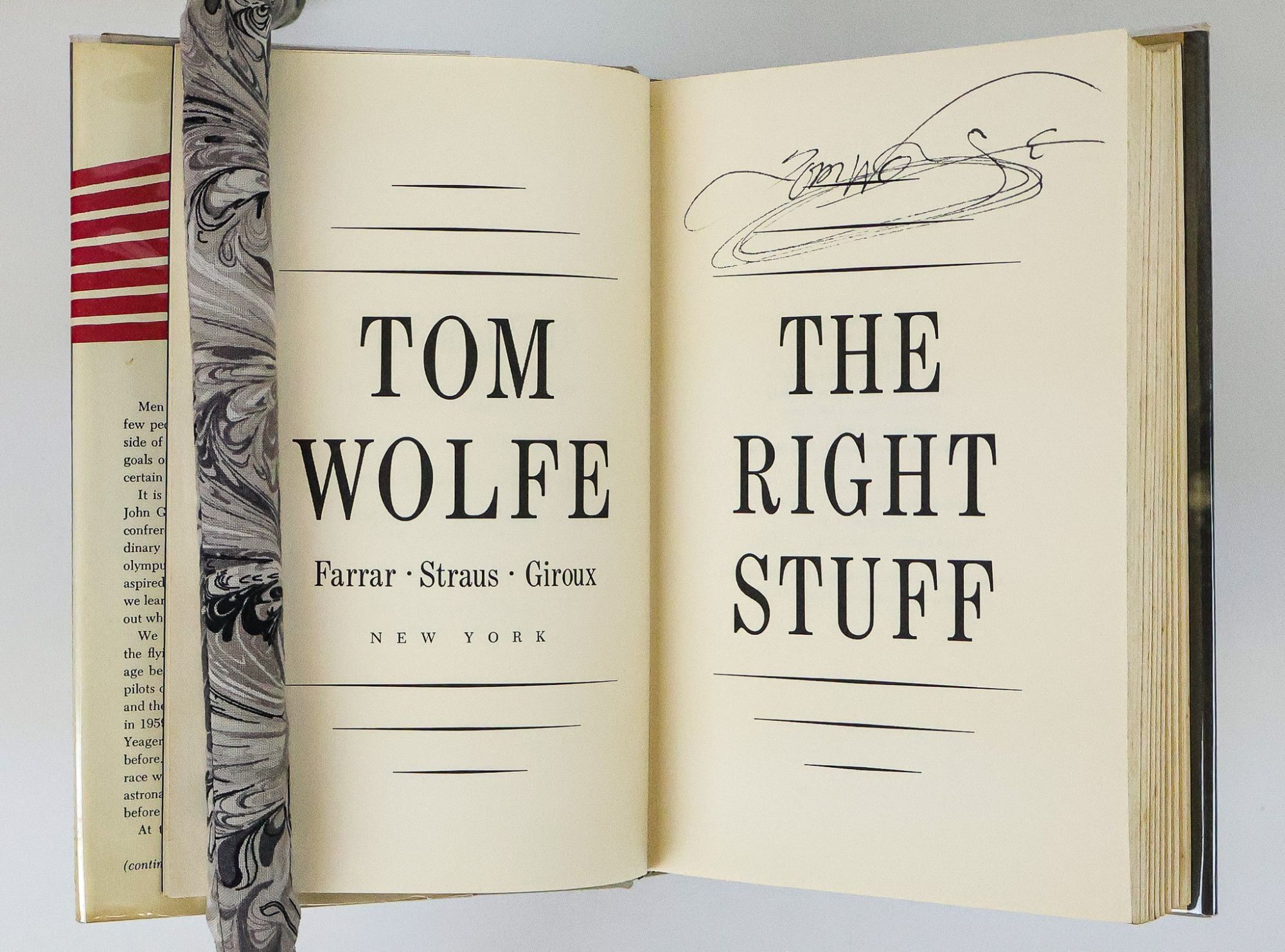 New York, NY: Farrar, Straus and Giroux, Inc, 1979. First Edition, First Printing. Hardcover. Octavo, 436 pages. In Very Good condition with a Very Good minus condition dust jacket. Mettalic grey spine with black lettering. Dust jacket is wrapped in a mylar covering, price is clipped, has mild shelving wear, small chips on the front cover, and mild age-toning throughout. Boards have mild wear along the head and tail edges, mild age-toning along the head and tail edges, and mild warping on the front board. Textblock has denting from the front end-page to the title page, stains on the end-pages and pastedowns, mild wear along the edges, and light foxing along the edges. Signed flat by Tom Wolfe on the title page. DL consignment. Shelved in Case 1 1/2. 1394302. Shelved Dupont Bookstore.