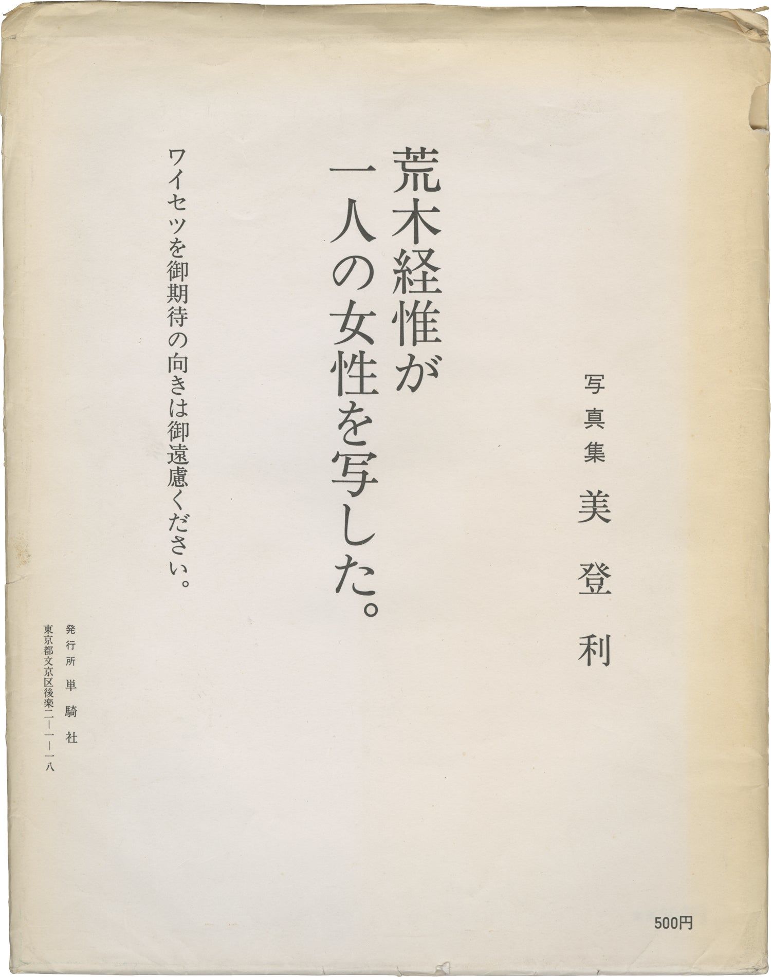 A photo book depicting the life of Midori, a bath house girl, interspersed with photographs of the Toyko neighborhood where she worked.