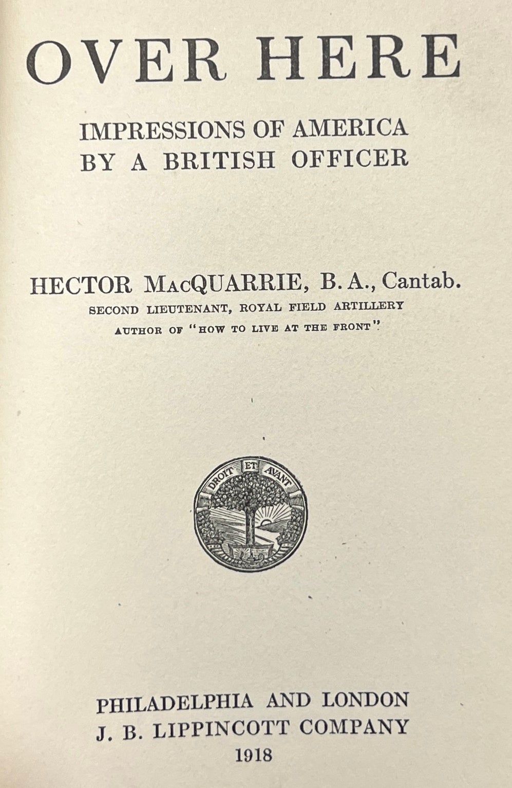 Philadelphia: J.B. Lippincott Company, 1918. First Edition. Hardcover. Good/Good. Good in a Good jacket unclipped ($1.35 on the spine), generally toned and soiled, chips at the spine and edges, a tidemark on the front panel. Yellow cloth, generally soiled and lightly bumped, with black ink lettering on the spine and front board and with a paste-down portrait on the front board. Firmly bound with a slight forward lean, toned pages, clean otherwise. An interesting World War I book in which the invalided MacQuarrie is sent from Ypres to the United States to travel and lecture.
