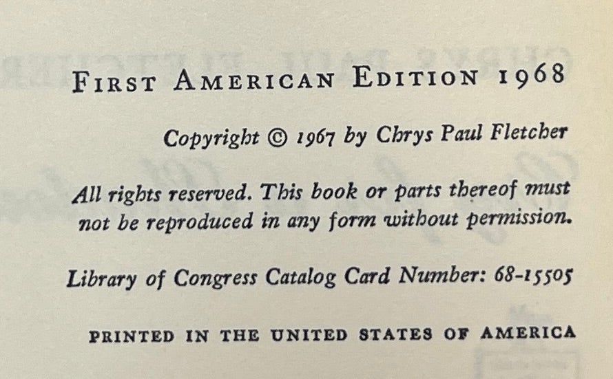 New York: G.P. Putnam's Sons, 1968. First Edition. Hardcover. Near Fine/Very Good. Near Fine in a Very Good jacket, unclipped ($4.95), bumped and with a few short chips and tears at the edges. Grey cloth with silver gilt lettering on the spine and front board. Square and firmly bound, clean internally. Fletcher's novel of the hippie/mod/rock generation, telling the story of "the rootless, alienated young and the folk singer they idolize.
