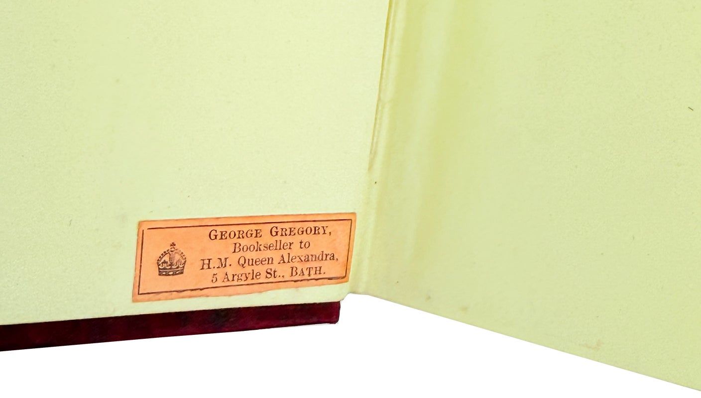 London: Published for the Proprietor by Hurst, Chance, and Co. / R. Jennings, 1828. Very Good. London: Published for the Proprietor by Hurst, Chance, and Co., 65, St. Paul's Churchyard, and R. Jennings, 2, Poultry, [1828]. First Edition. Octavo (19cm.); publisher's magenta moire silk, gilt-lettered spine, all edges gilt, binder's ticket of F. Westley to rear pastedown; vii,[1],360pp.; engraved presentation plate with initials "S.W.," frontispiece and added title page, sixteen (16) leaves of plates throughout (collated complete). Some scuffing at corners and spine ends with brief exposure, front hinge just starting, else a Very Good, internally clean and sound copy, housed in modern linen clamshell box. Rather pretty orange contemporary bookseller ticket to front pastedown of George Gregory, "Bookseller to H.M. Queen Alexandra."