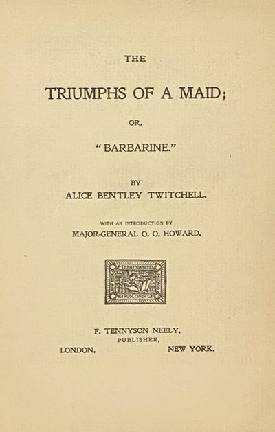 London / New York: F. Tennyson Neely, 1899. First Edition. Hard Cover. Very Good/No Jacket. First edition. Scarce - only 5 in OCLC. Spine toned, edges a bit faded. 1899 Hard Cover. 191, [1] pp. Green cloth, gilt titles, maroon border and rules. Photographic frontispiece of O.O. Howard. Includes introduction by Major General Oliver Otis Howard, who served the Union during the American Civil War, and helped integrate American slaves during Reconstruction. He states, in describing the protagonist: 'The gradual development of the child mind and heart; the startling influence that Barbarine finally attains; her sudden appearance in public, and her success in fascinating by her music an assembled multitude - it is all there in the book.