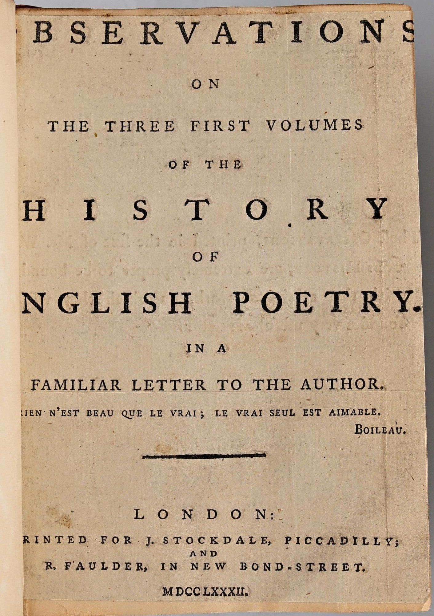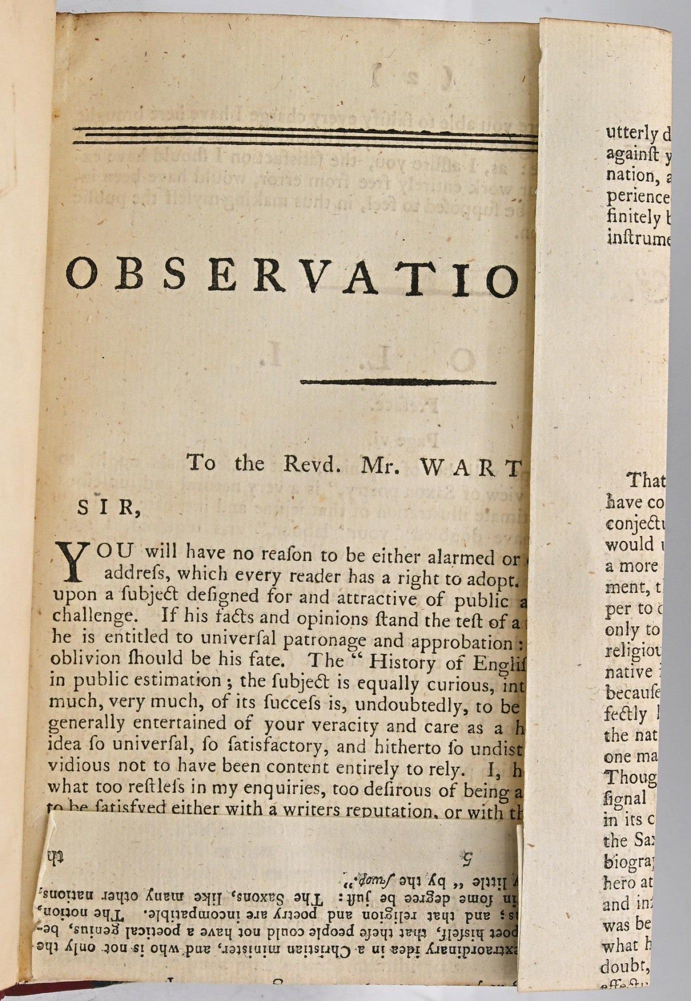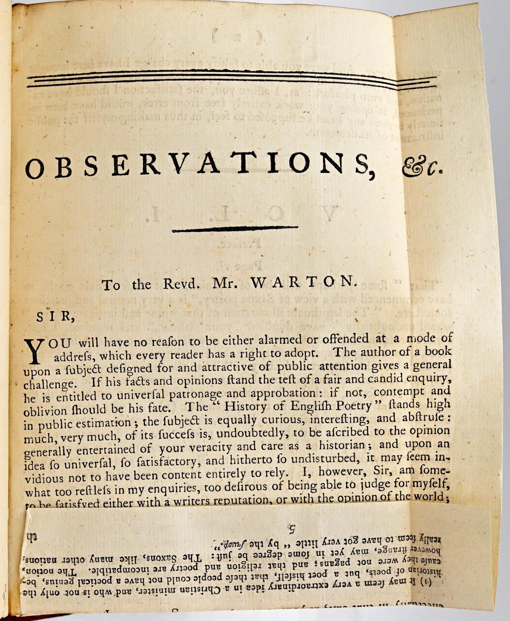 [BOUND TO SIZE] OBSERVATIONS ON THE THREE FIRST VOLUMES OF THE HISTORY OF ENGLISH POETRY. IN A FAMILIAR LETTER TO THE AUTHOR