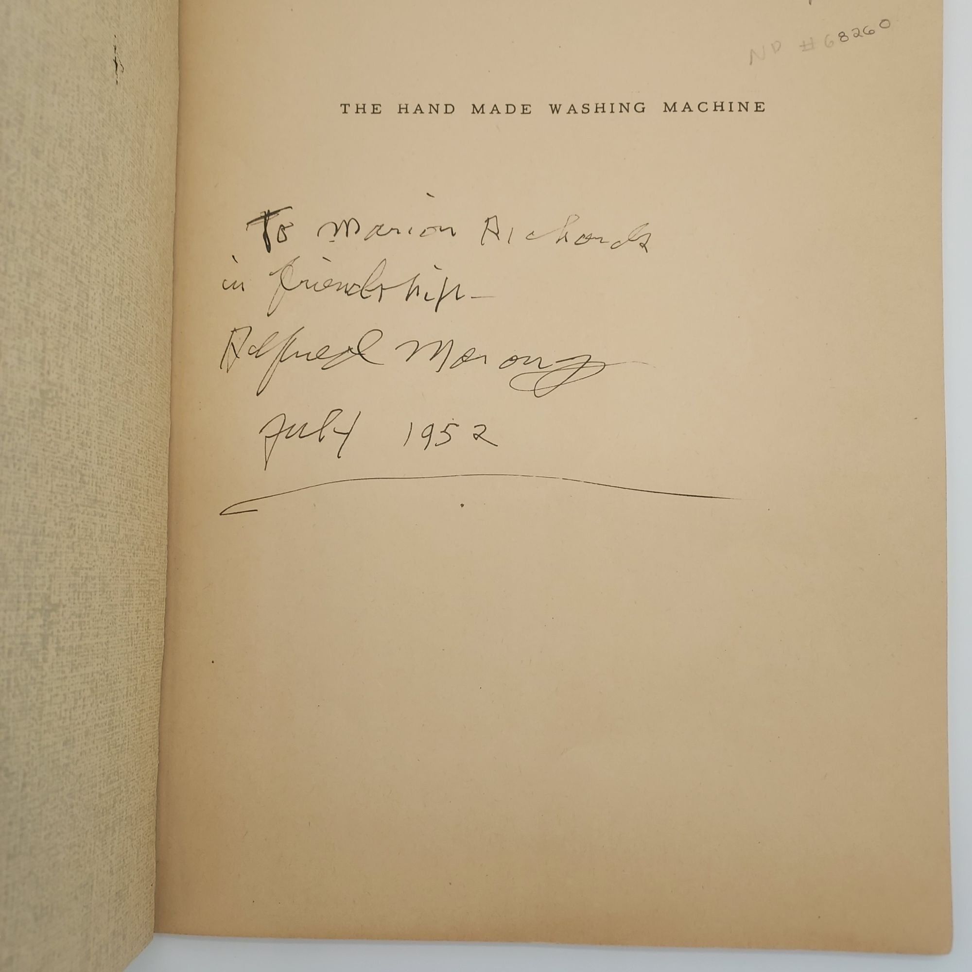 Denver: Alan Swallow, 1952. Limited Edition. Paperback. Very Good Minus. SIGNED. Very thin quarto [27 cm] Black cloth spine with taupe and black pictorial wraps. The front wrap has a light vertical crease through the center. The cloth has peeled away from the stapled binding of the rear wrap. Poetry accompanied by tipped-in reproduced illustrations by Alfred Morang. One in an edition limited to 250 copies. Inscribed by the author, in the year of publication, on the title page: "To____ / in friendship / Alfred Morang / July 1952." Alfred Gwynne Morang (1901-1958) was an American painter, writer, art critic and active member of the Santa Fe art colony.