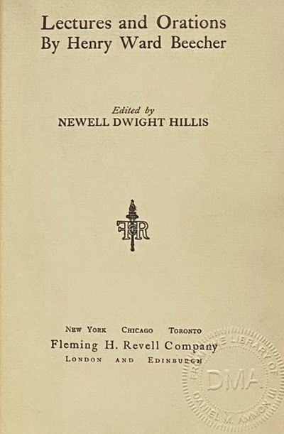 New York / Chicago: Fleming H. Revell Company, 1913. First Edition. Hard Cover. Good/No Jacket. 0x0x0. First edition. Frontispiece removed, front hinge weakening, ink name and date on front endpaper, embossed owner stamp on title page, clippings from several articles mounted on endpapers. 1913 Hard Cover. 330 pp. Red cloth, gilt titles. A collection of essays by the prominent American minister. Includes: Foreword by Newell Dwight Hillis; Puritanism; The Wastes and Burdens of Society; The Reign of the Common People; Eloquence and Oratory; William Ellery Channing; Charles Sumner; Wendell Phillips; Eulogy on Grant; Abraham Lincoln; Appendix: Patriotism Above Party; The Herbert Spencer Dinner; Index. Henry Ward Beecher, (born June 24, 1813, Litchfield, Connecticut, U.S. - died March 8, 1887, Brooklyn, New York), liberal U.S. Congregational minister whose oratorical skill and social concern made him one of the most influential Protestant spokesmen of his time. He was the eighth of the Rev. Lyman Beecher's 13 children and showed little promise at various schools until he went to Amherst College in 1830. Though never distinguished as a scholar, he became a superior speaker and popular leader. After three postgraduate years in Cincinnati, Ohio, at Lane Theological Seminary, of which his father became president in 1832, Beecher in 1837 became minister to a small Presbyterian congregation at Lawrenceburg, Indiana. He gradually cultivated his pulpit technique, there and in a pastorate at Indianapolis, Indiana (1839 - 47), and came to believe that a sermon succeeds by focusing on the single objective of effecting a moral change in the hearer. A highly successful preacher and lecturer, Beecher furthered his reputation through Seven Lectures to Young Men (1844), vivid exhortations on the vices and dangers in a frontier community.