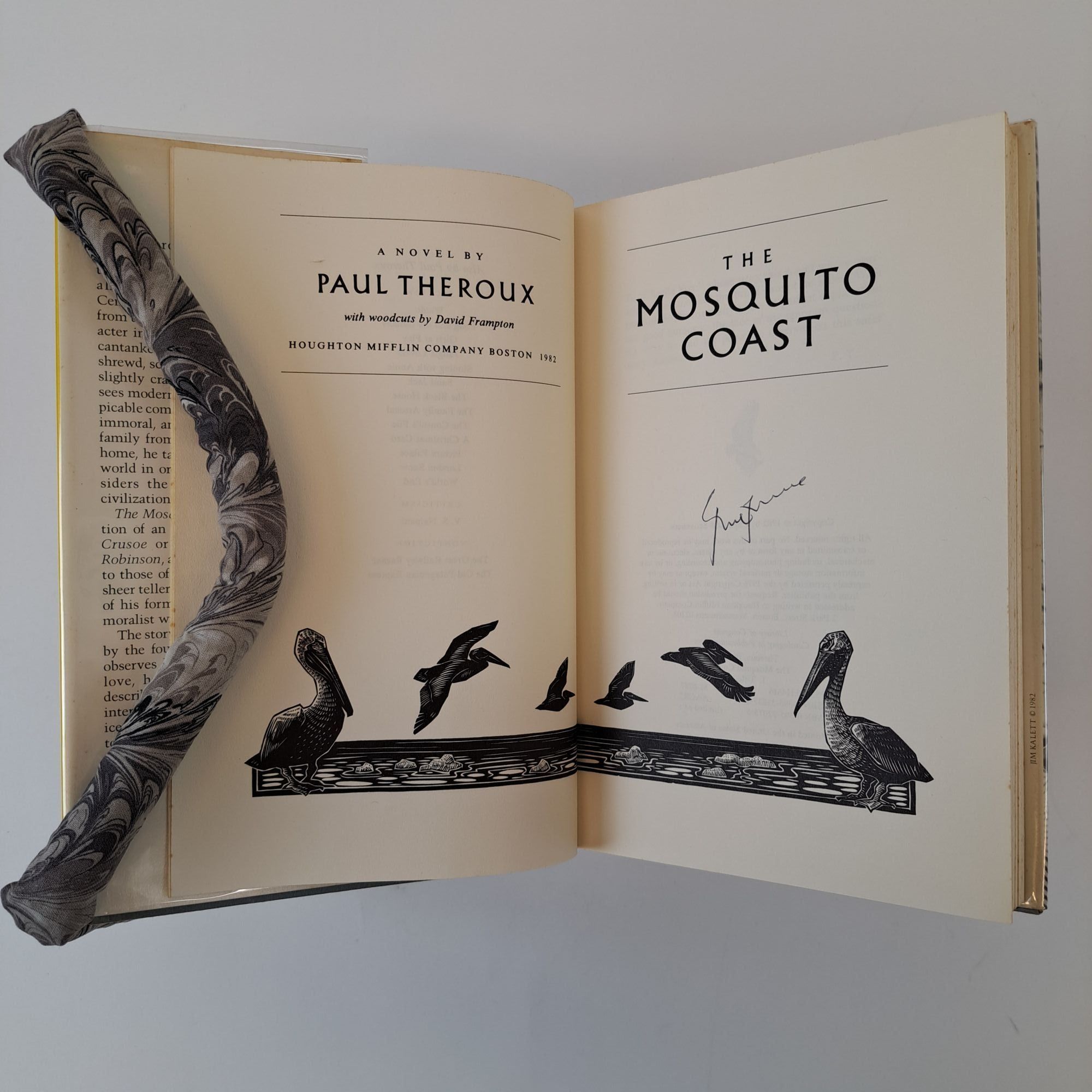 Boston, MA: Houghton Mifflin Company, 1982. First U.S. Edition, First Printing. Hardcover. Octavo, 374 pages. In Very Good minus condition with a Very Good condition dust jacket. Yellow spine with red, blue, green and black lettering. Dust jacket is wrapped in a mylar covering, price uncut "$13.95", has rubbing wear and light stains on the spine, and general shelving wear. Boards have mild age toning along the head/tail edges, stains along the spine head, and bending wear along the spine and tail fore corners. Textblock has a stain on page 80, and foxing along the pastedown pages, end-pages and edges. Signed flat by Paul Theroux on the title page. Shelved in Room C. 1394741. Special Collections.