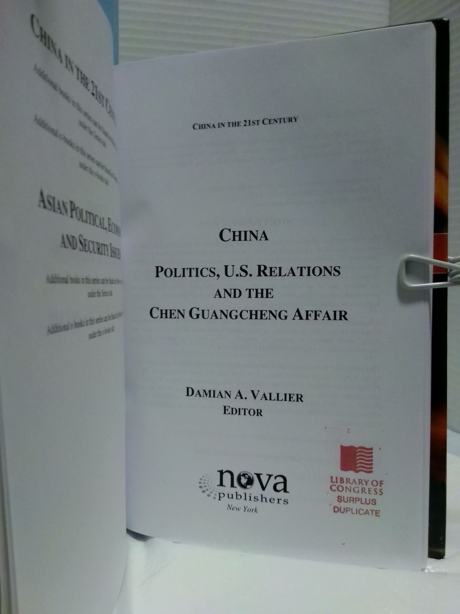 CHINA: POLITICS, U.S. RELATIONS AND THE CHEM GUANGHENG AFFAIR [CHINA IN THE 21ST CENTURY]