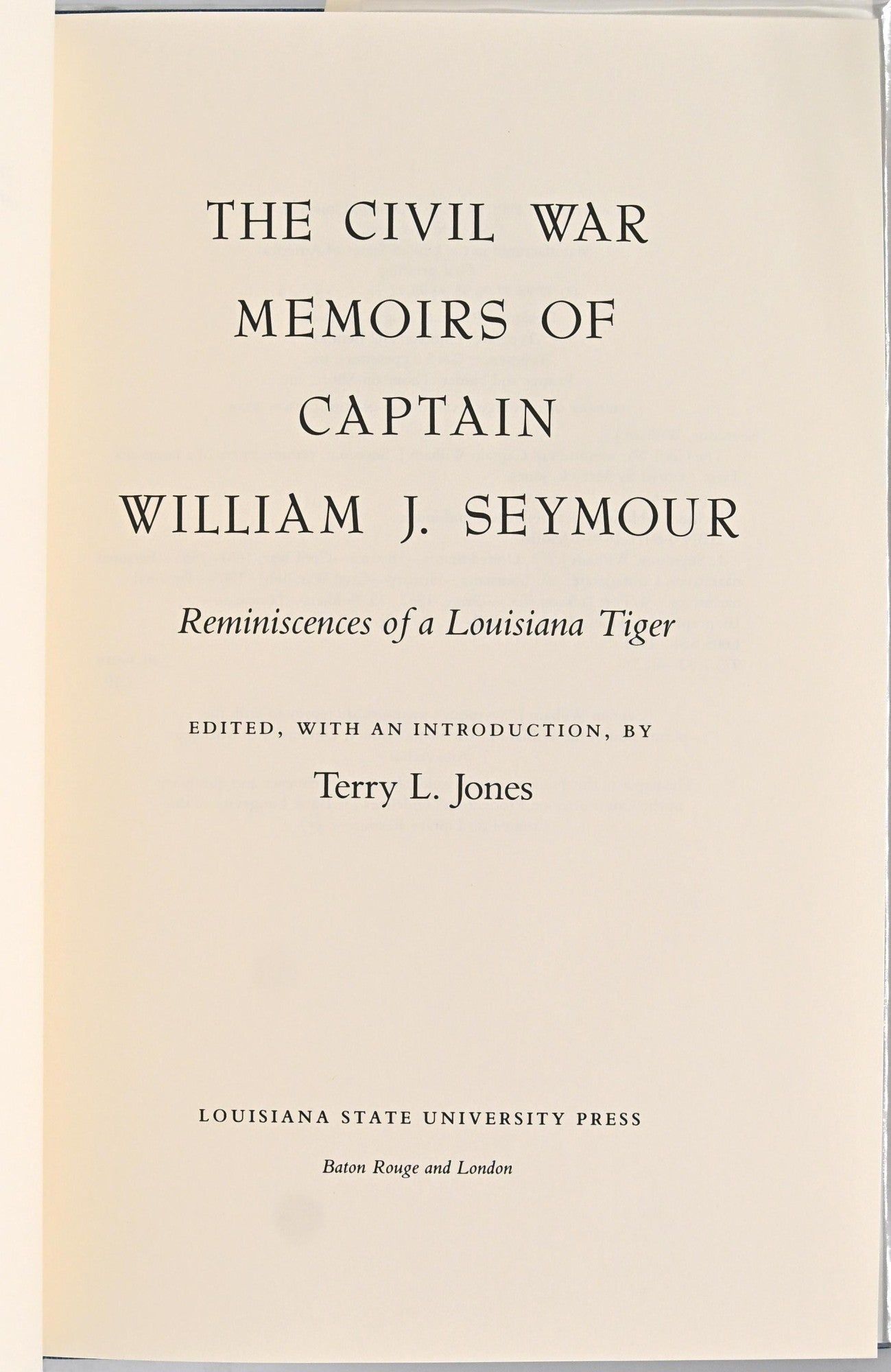[CIVIL WAR] THE CIVIL WAR MEMOIRS OF CAPTAIN WILLIAM J. SEYMOUR. REMINISCENCES OF A LOUISIANA TIGER