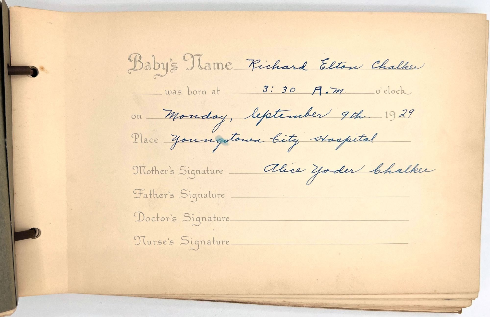 Baby Dear" -- Baby Book of Richard Elton Chalker (died at 7 mos.)