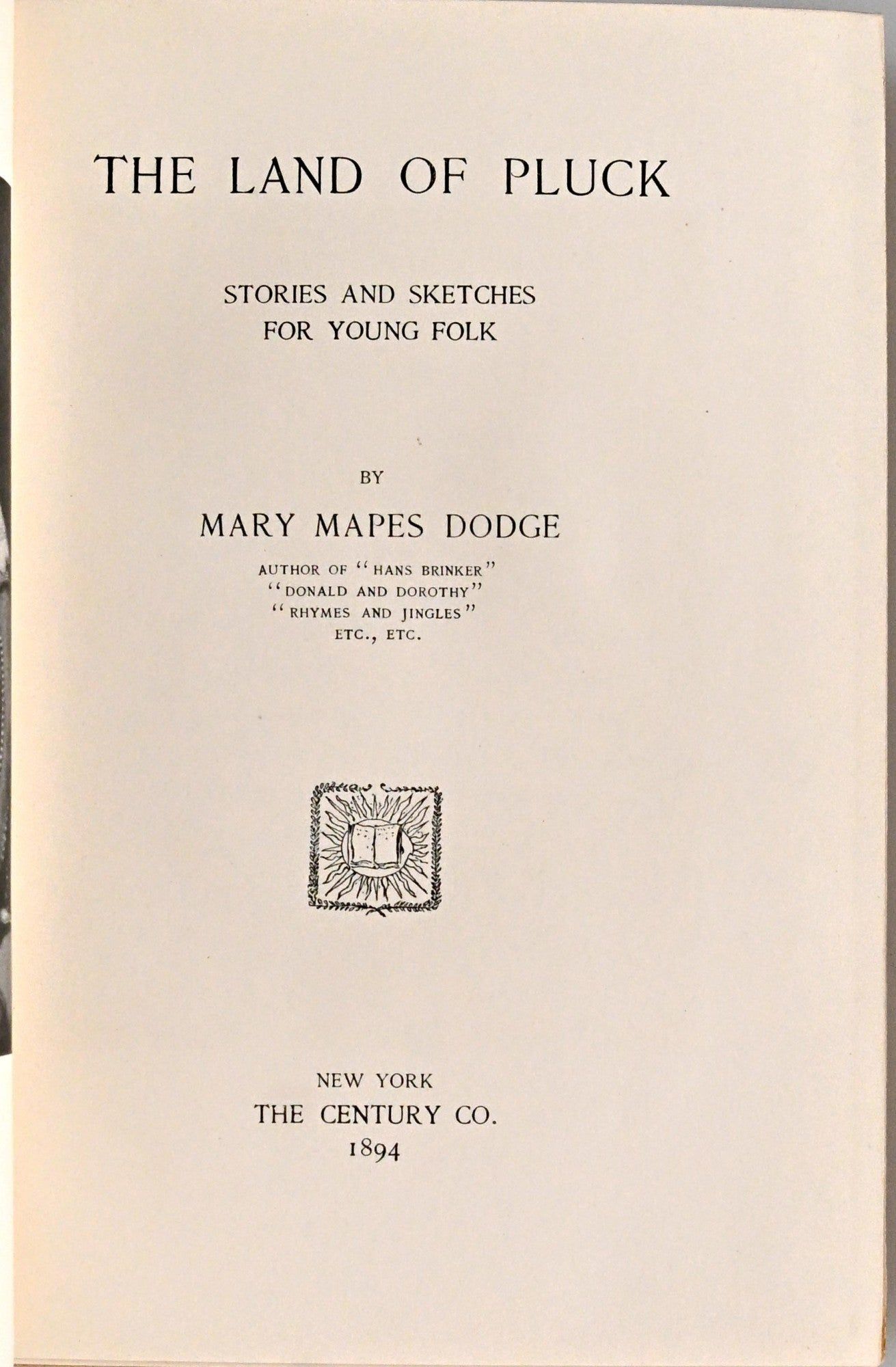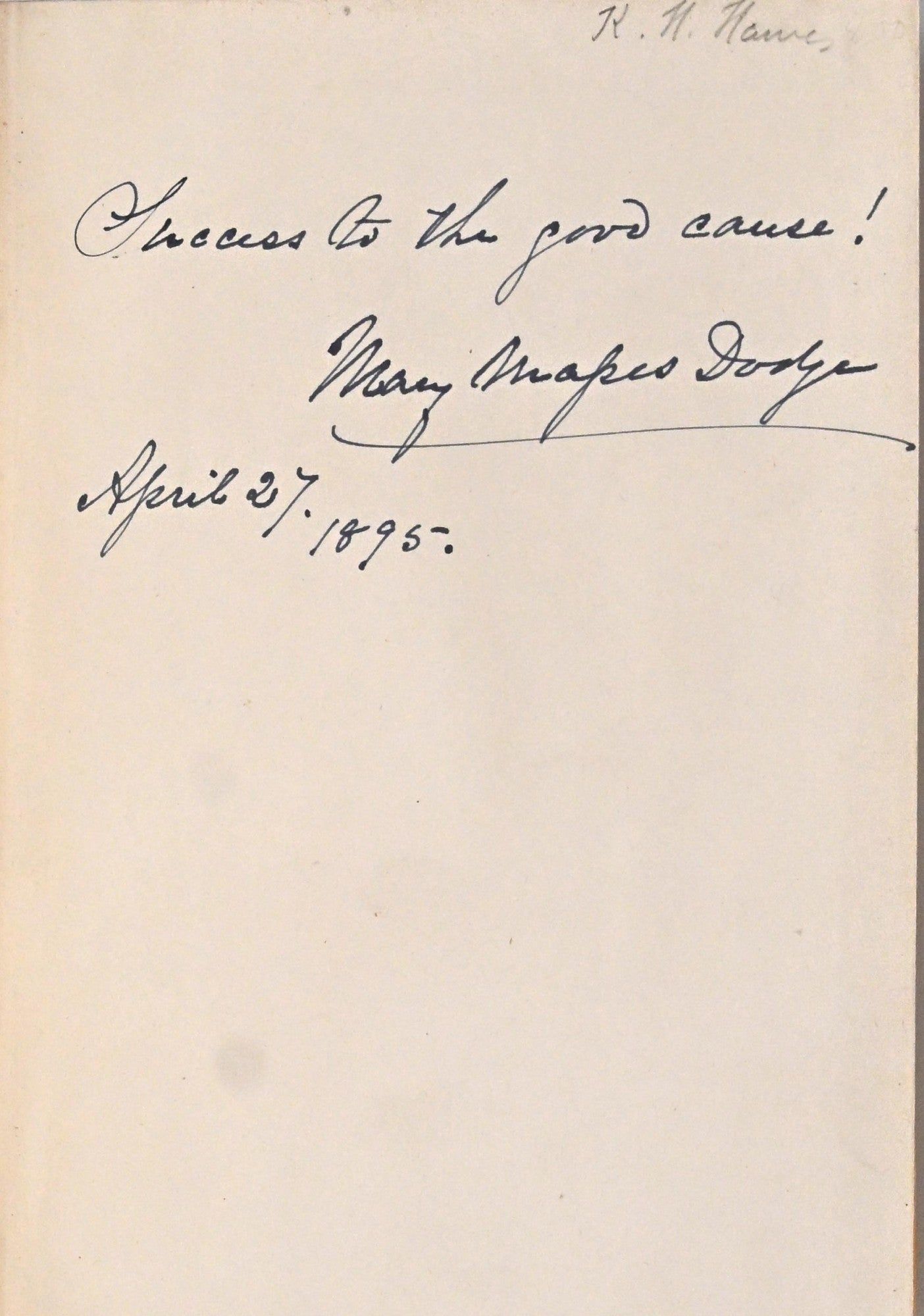 New York: The Century Co, 1894. First Edition. Hard Cover. Very Good binding. Signed. An attractive copy of Ms.Dodge’s last book signed by the author on the front end paper, with a tipped in signed anagram in her handwriting “written for the purchaser of this book, April 27, 1895”. While Dodge notes that it is “too simple an anagram to require an answer here”, it took our shop staff some little while to figure it out. However, we are not regular readers of St. Nicholas Magazine, which Dodge edited and which was full of anagrams. A charming item.~~8vo; in publisher’s orange cloth; with decorations and tilting on the upper board and spine in gilt and decorations on the boards and spine stamped in blind; 313 pages; a few trivial stains on the board; the spine is darkened; the book is a bit cocked; there is a previous owner’s name plate to the front pastedown. Very Good binding.