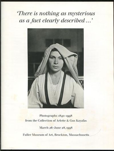 Brockton MA: Fuller Museum of Art. Near Fine. 1998. First Edition. Stapled wraps. [minor smudging to a couple of pages, otherwise as new]. (B&W photographs) Catalogue for an exhibition at the Fuller Museum of Art in Brockton, Massachusetts, from March through June of 1998. Apart from a one-page explanation about the collection, the publication is entirely given over to reproductions of some of the photos in the exhibition. Including the cover shot, there are twenty images altogether (presented either two or one on a page), including work by Lewis W. Hine, Julia Margaret Cameron, August Sander, Eugene Atget, Berenice Abbott, Walker Evans, Lisette Model, Harry Callahan, and Garry Winogrand. 16 pages, including covers. .