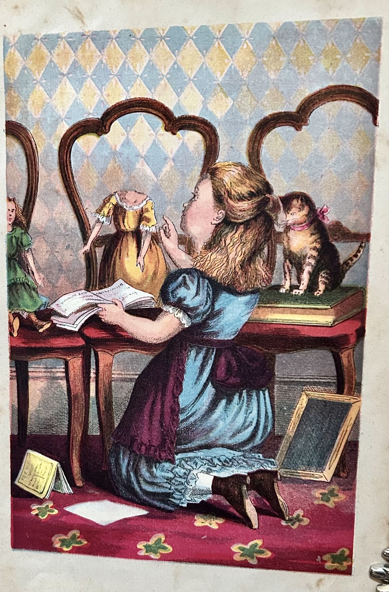 New York: McLoughlin Brothers, 1870. Hardcover. Orig. green cloth lettered in gilt, front cover pictorial inset. Yellow endpapers. Very good. 64 unnumbered pages. 26 x 18 cm. Nine full page chromolithographs. Interior contents clean. Owner inscription front free endpaper and owner book label bottom back cover pastedown. Rubbing to corners, nicks to backstrip head and foot. OCLC: 24104347.
